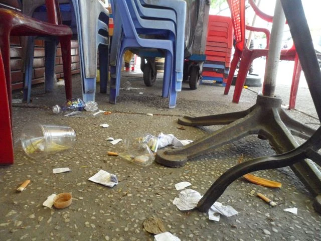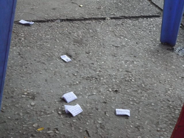 Tại Hội đồng thi trên, PV đã ghi lại được hình ảnh “phao” thi vứt tràn lan ở các hành lang, ghế đá khu vực trường thi. Trong đó nhiều nhất là ở quán nước ngay cạnh điểm thi, phao vứt trắng cả quán nước.