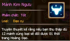 - Thu thập 12 mảnh thời trang có thể đổi 1 thời trang Hoàng đạo