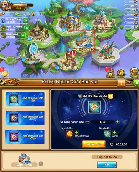 - Tăng cấp Viện Nghiên Cứu sẽ mở được các Khế Ước Sơ - Trung - Cao nhận Mảnh Bảo Vật