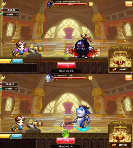 - Đổi tên BOSS Vua Tu Luyện và Lãnh Chủ Chúc Phúc thành BOSS Thầy Tế Chiến Văn (chủ yếu rơi Hồn Chiến Văn + Bình Tu Luyện) và Bảo Vệ Báu Vật (chủ yếu rơi item hệ thống Báu vật + item hệ thống chúc phúc)
