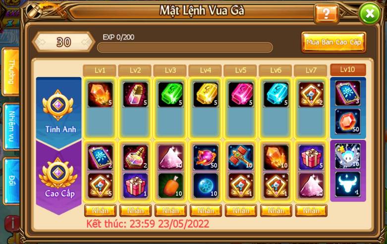 - Rượt đuổi nhanh: Tùy theo ngày mở máy chủ, hệ thống sẽ tính toán tặng Bình Kinh Nghiệm Lv5, Lương Thực và Bình Tu Luyện Lv2 để đạt mức quy định của máy chủ. Trong phiên bản này, hệ thống được điều chỉnh mở rộng cấp tối đa và phần thưởng tối đa. Cụ thể như sau:
