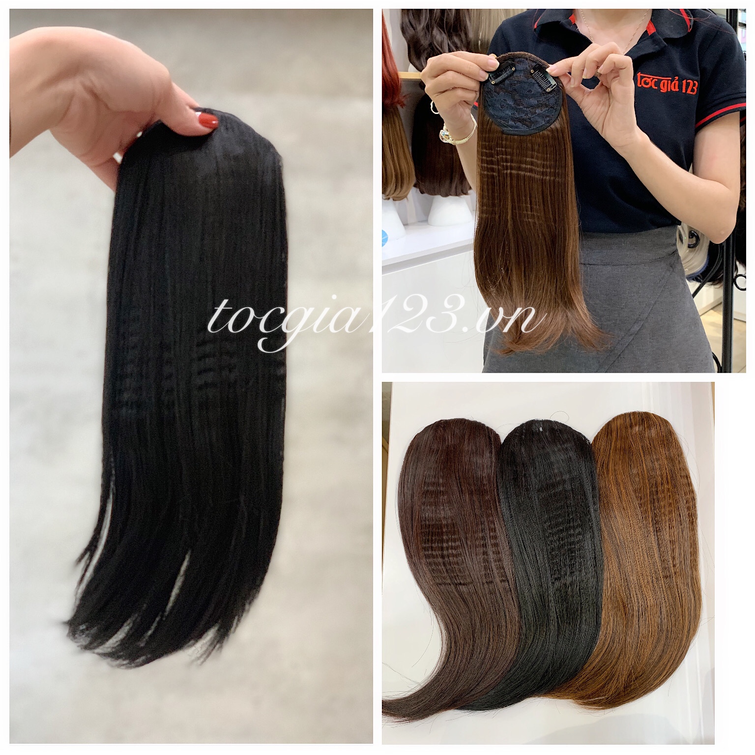 💥 Hình chụp sản phẩm thật của Tóc Giả 123.👌 Chất liệu bằng sợi tơ cao cấp mềm mượt, có thể dùng nhiệt tạo kiểu và giống tóc thật đến 99%. Tất cả sản phẩm tơ nhân tạo đều được bảo hành + chải tóc miễn phí 3 tháng.💥 Cửa hàng luôn có sẵn rất nhiều mẫu tóc để khách đến thử trực tiếp và cắt tỉa, tạo kiểu theo yêu cầu.👍 Vui lòng nhắn tin cho shop để được báo giá và tư vấn cụ thể về sản phẩm hoặc đặt kiểu theo yêu cầu riêng.👉 Nhận giao hàng tận nơi trên toàn quốc.