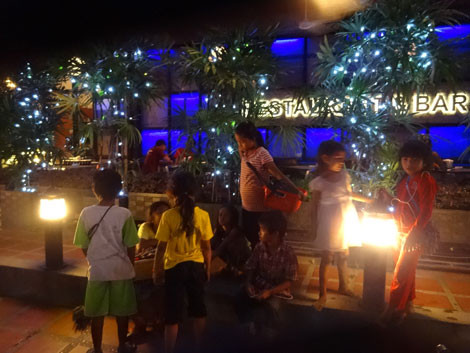 Gần 17 giờ, từ các nhà nghỉ, khách sạn nằm trên các con đường nhỏ hợp thành khu phố Tây, khách du lịch bắt đầu túa ra hóng gió sông, dạo chơi đông nghịt. Trong rất nhiều du khách mà tôi gặp, bên cạnh những đôi trai Tây gái Tây, thấy nhiều cặp là trai Tây gái châu Á, hỏi ra mới biết cánh má hồng cặp kè với mấy anh chàng mắt xanh kia là các cô gái người bản xứ, từ phố Tây Sài Gòn sang, có cả các cô gái là người Campuchia gốc Việt xuất thân từ các khu ổ chuột ở các quận ngoại thành của thủ đô Phnôm Pênh tráng lệ.