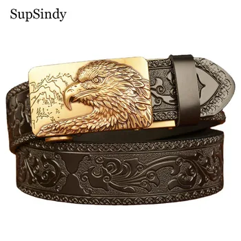 SupSindy Nam da thật Thắt lưng da thật sang trọng Vàng Eagle Kim loại tự động Khóa thắt lưng da bò cho nam Dây thắt lưng quần jean Nam Dây đeo màu đen 452,960 ₫ (5.0)