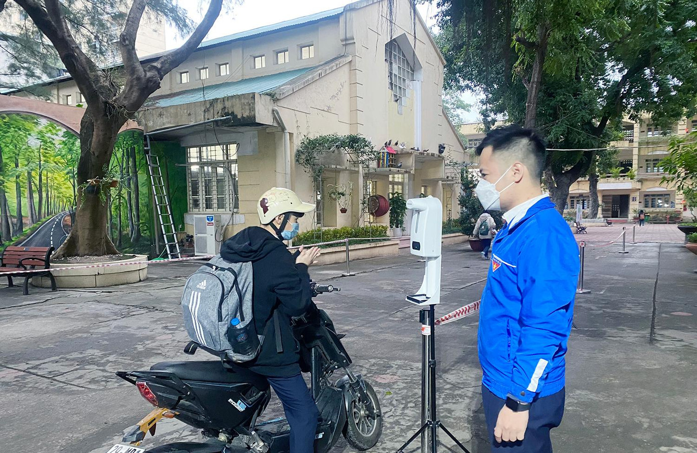 Theo anh Trần Quang Hưng, Phó Bí thư Thành Đoàn, Chủ tịch Hội Sinh viên TP. Hà Nội cho biết: 100% Đoàn Thanh niên, Hội Sinh viên các trường đại học, cao đẳng, học viện, các trường THPT, Trung tâm giáo dục nghề nghiệp, giáo dục thường xuyên đồng loạt tổ chức kích hoạt “Phòng tuyến áo xanh” thực hiện các nhiệm vụ như đo thân nhiệt, khử khuẩn, khai báo y tế, kiểm tra, giám sát, nhắc nhở đoàn viên, học sinh, sinh viên trong quá trình tham gia học tập tại trường và thực hiện nghiêm các quy định phòng, chống dịch bệnh COVID-19.