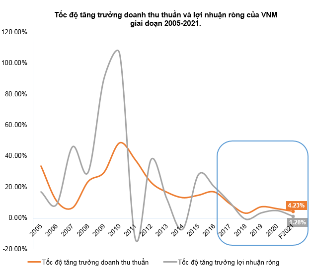 Ví dụ: Trường hợp của CTCP Sữa Việt Nam (HOSE: VNM). P/E của VNM trong quá khứ thường xuyên giao dịch cao hơn mức 20, tại nhiều thời điểm P/E của công ty này còn có lúc lên quanh mức 25-30. Tuy vậy, tốc độ tăng trưởng doanh thu của VNM cùng lúc đó lại liên tục được neo giữ trên mức 20%. Triển vọng tăng trưởng của VNM tại thời điểm này là rất tốt do đó P/E được nhà đầu tư chấp nhận ở mức cao là có thể hiểu được. Tuy vậy, từ 2017 trở về đi, khi mà công ty cho thấy sự chững lại về mặt kinh doanh, giá cổ phiếu đã có nhiều đợt sụt giảm và đi ngang suốt thời gian qua.