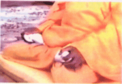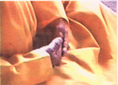 Lấy bàn tay phải để lên bàn tay trái. Hai bàn tay để lên hai lòng bàn chân,
