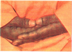 Những ngón tay chồng lên nhau, hai đầu ngón tay cái vừa chạm nhau, nằm ngay chiều rún.
