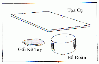 - Một tọa cụ vuông 8 tấc để trải dưới, bồ đoàn để lên trên.