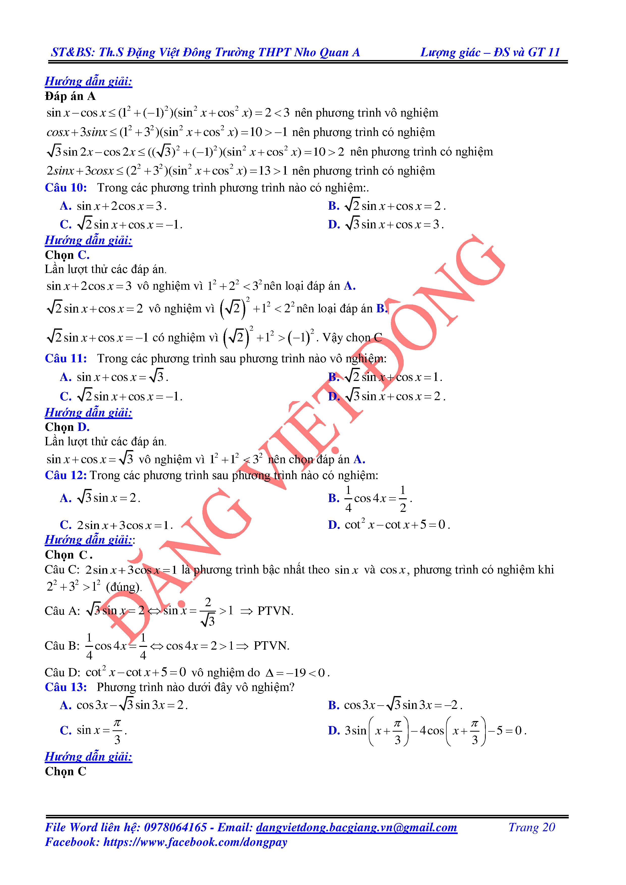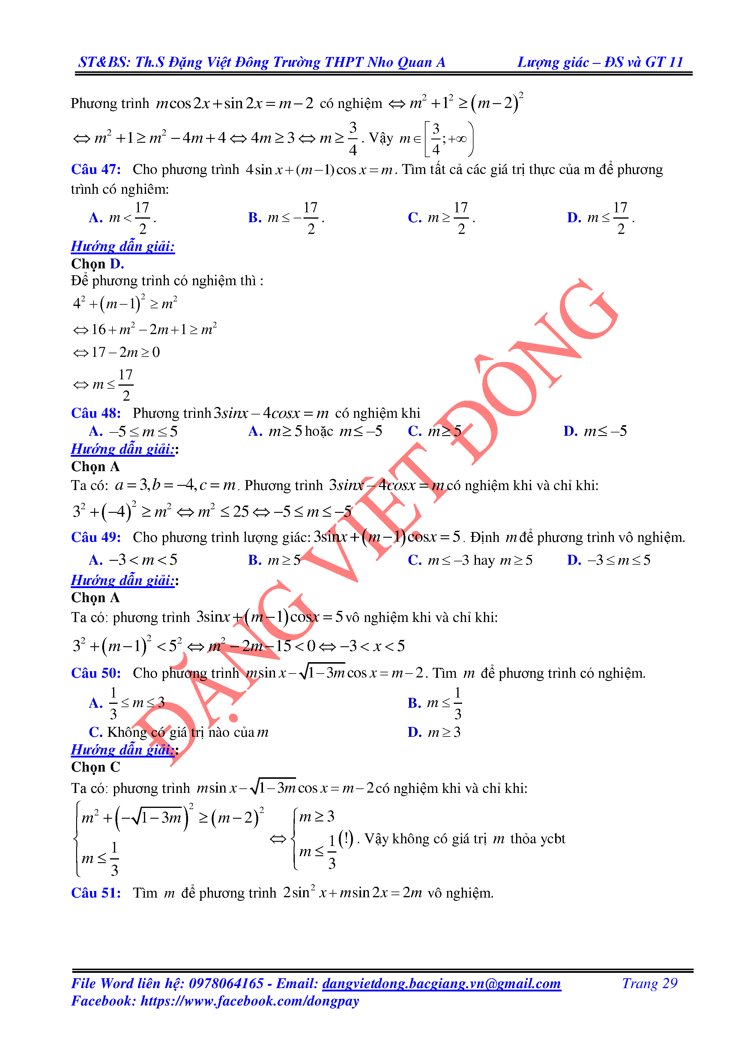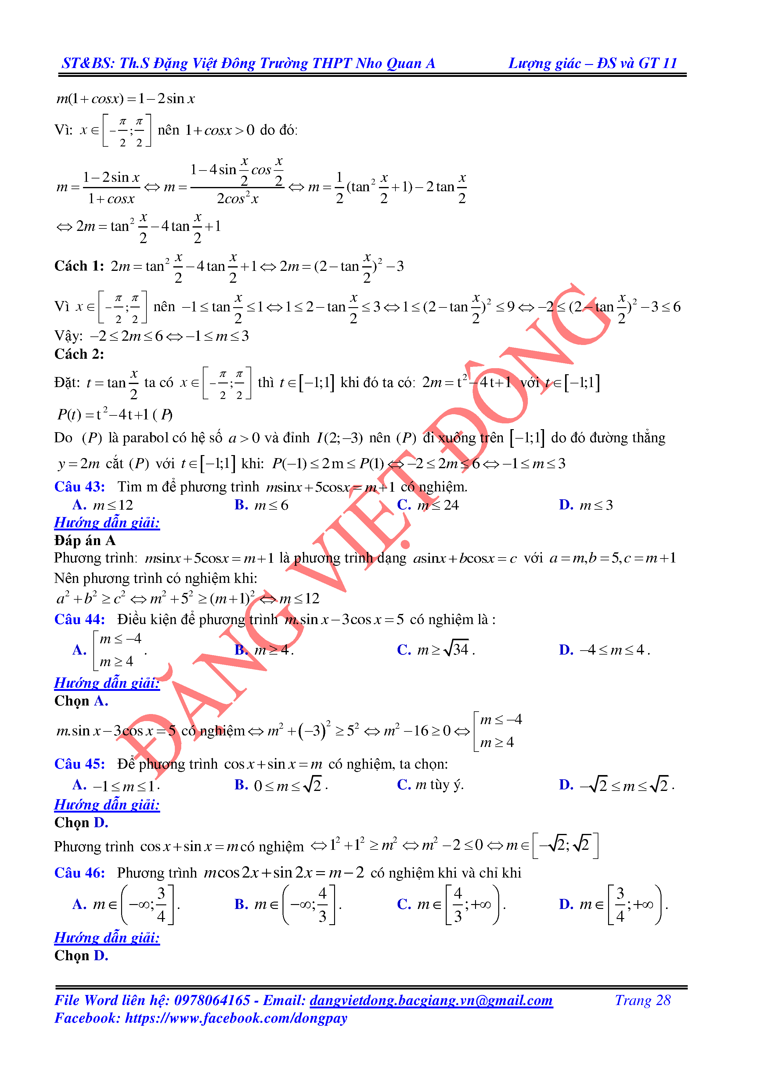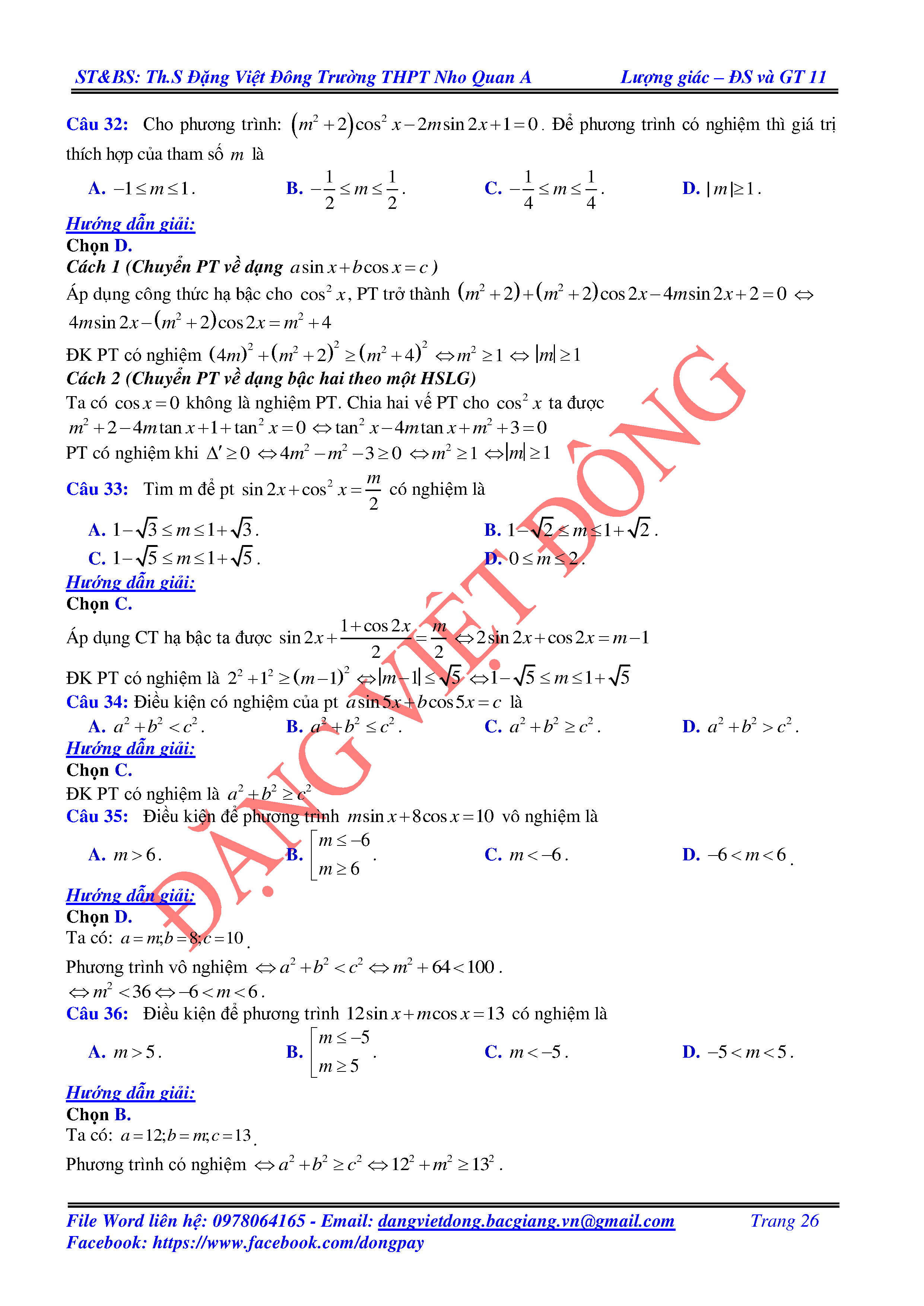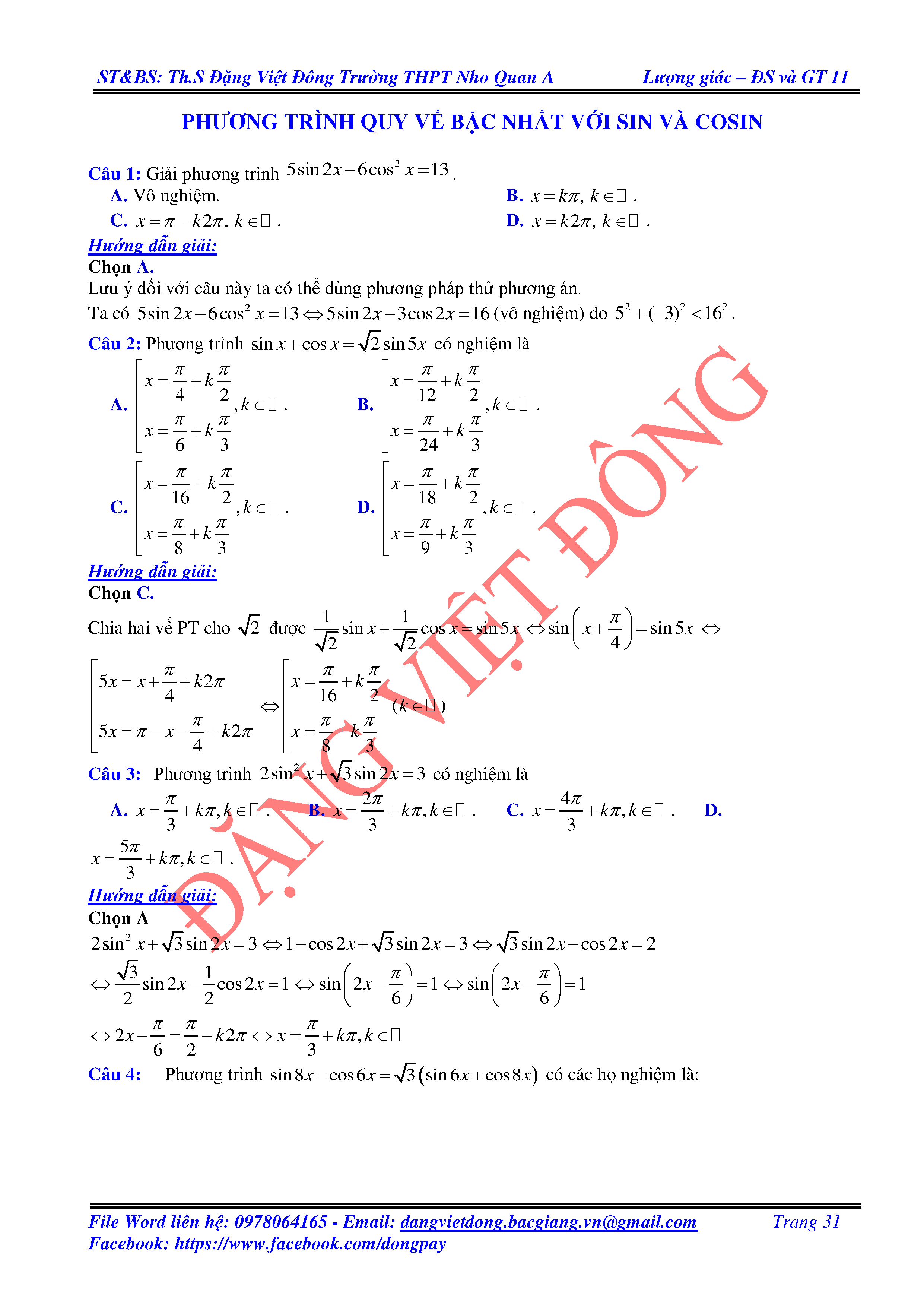 Bài Tập Có đáp án Chi Tiết Về Phương Trình Bậc Nhất đối Với Sin Và Cos ...