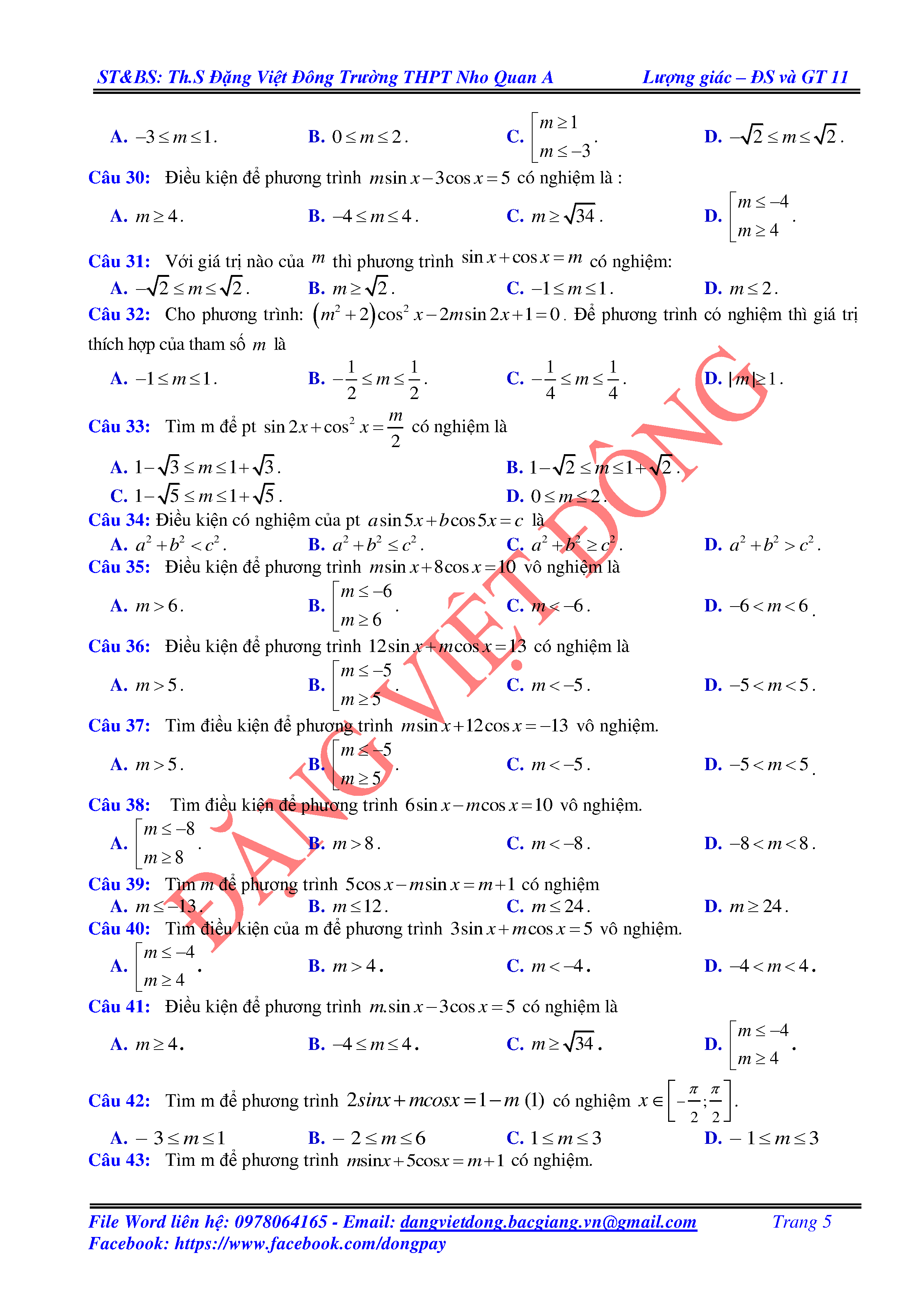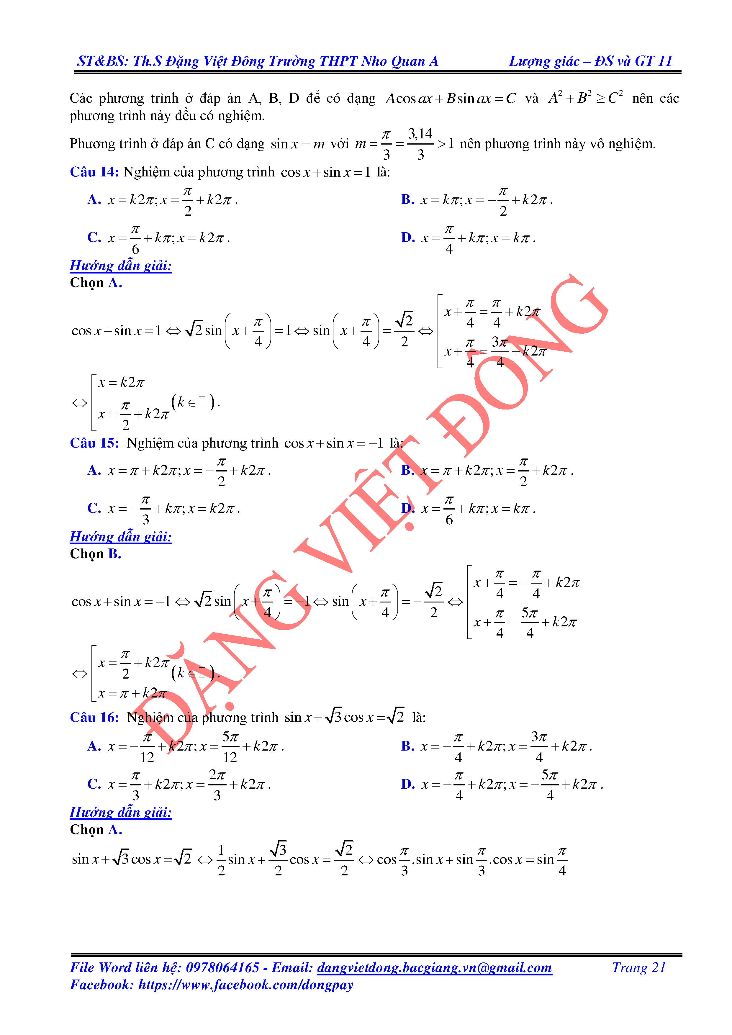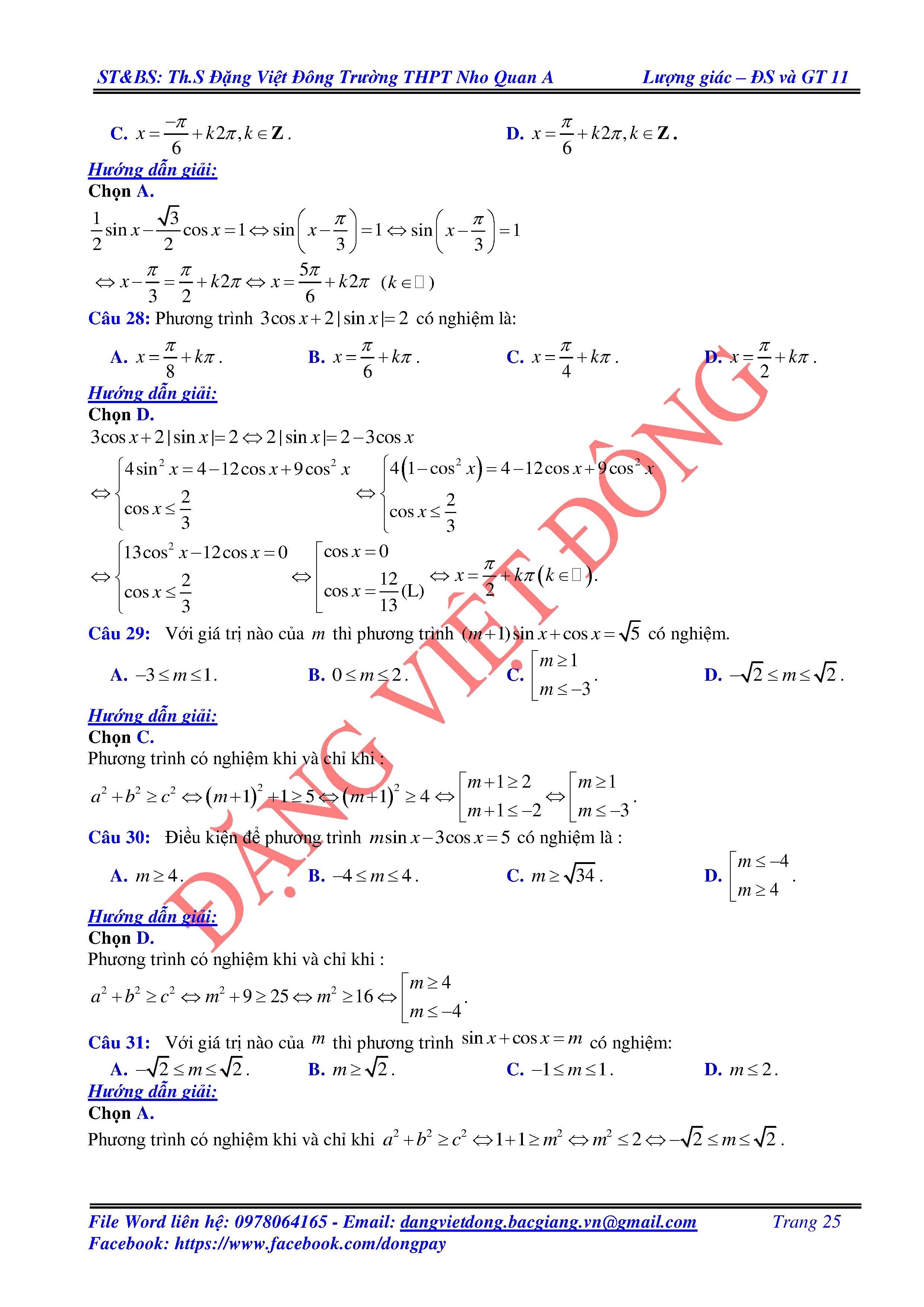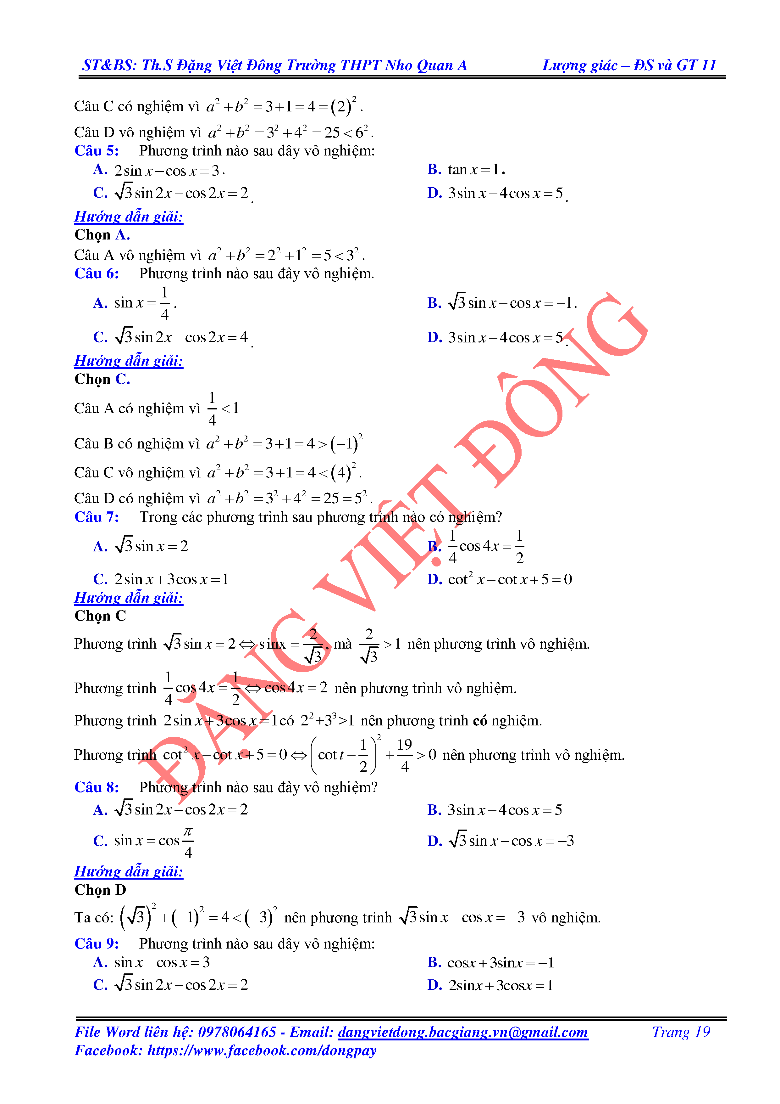 Bài Tập Có đáp án Chi Tiết Về Phương Trình Bậc Nhất đối Với Sin Và Cos ...