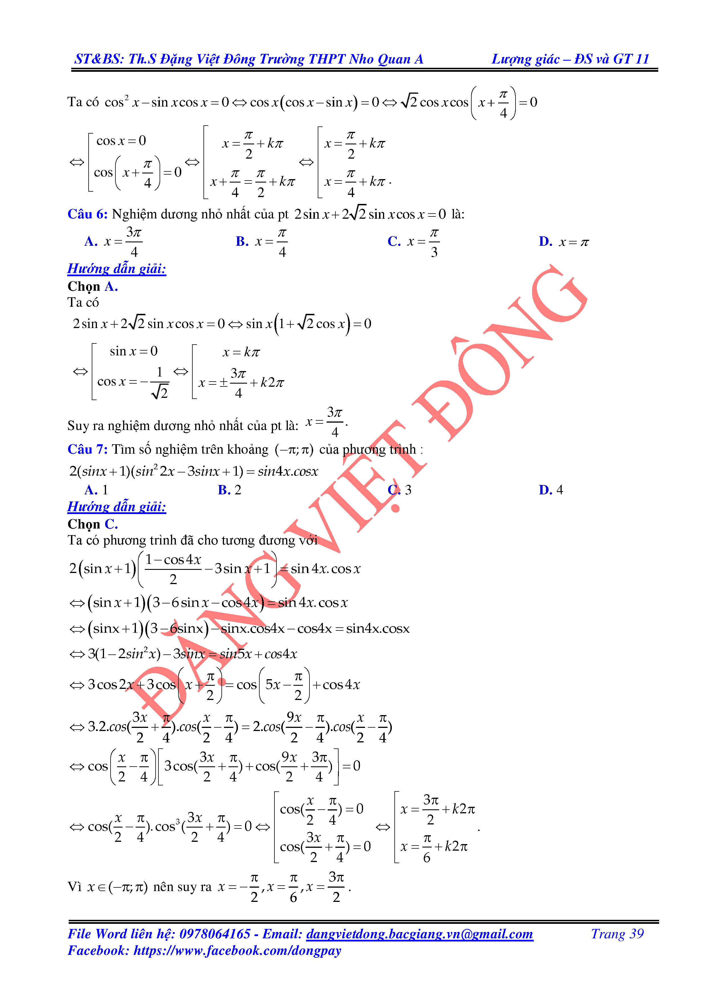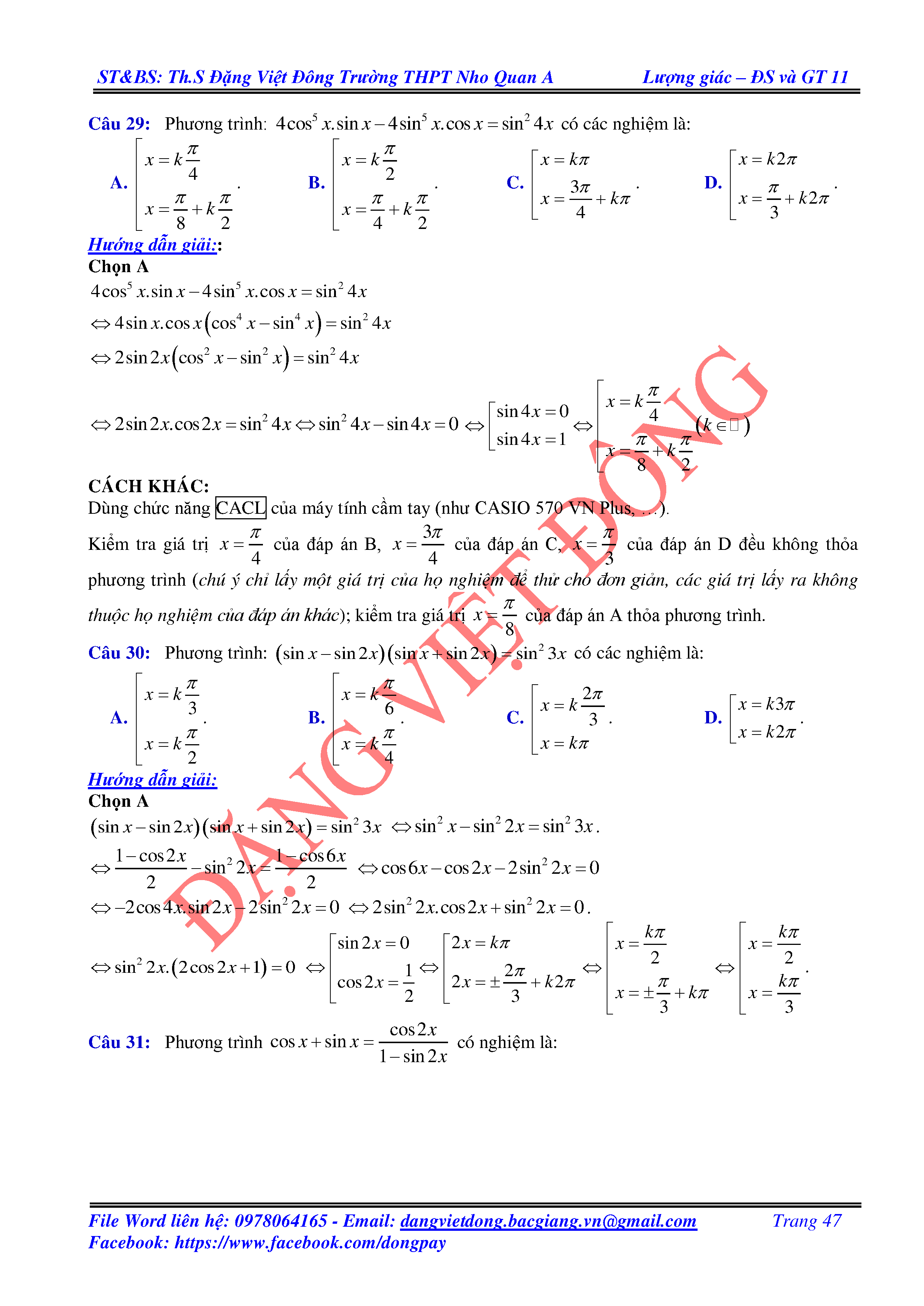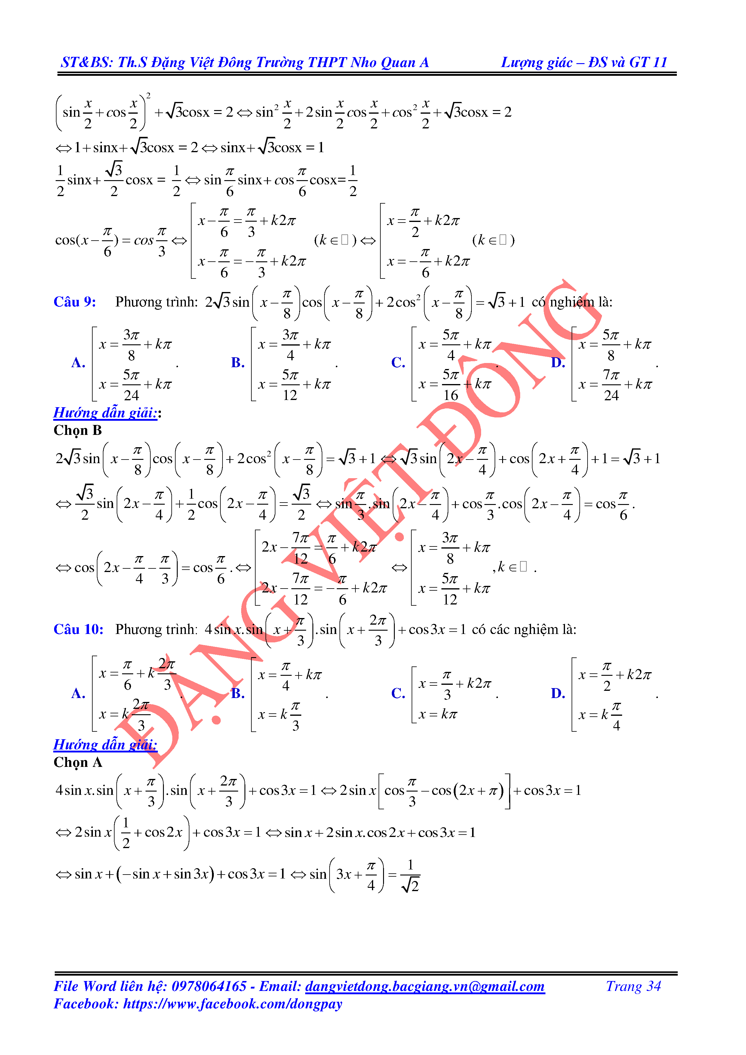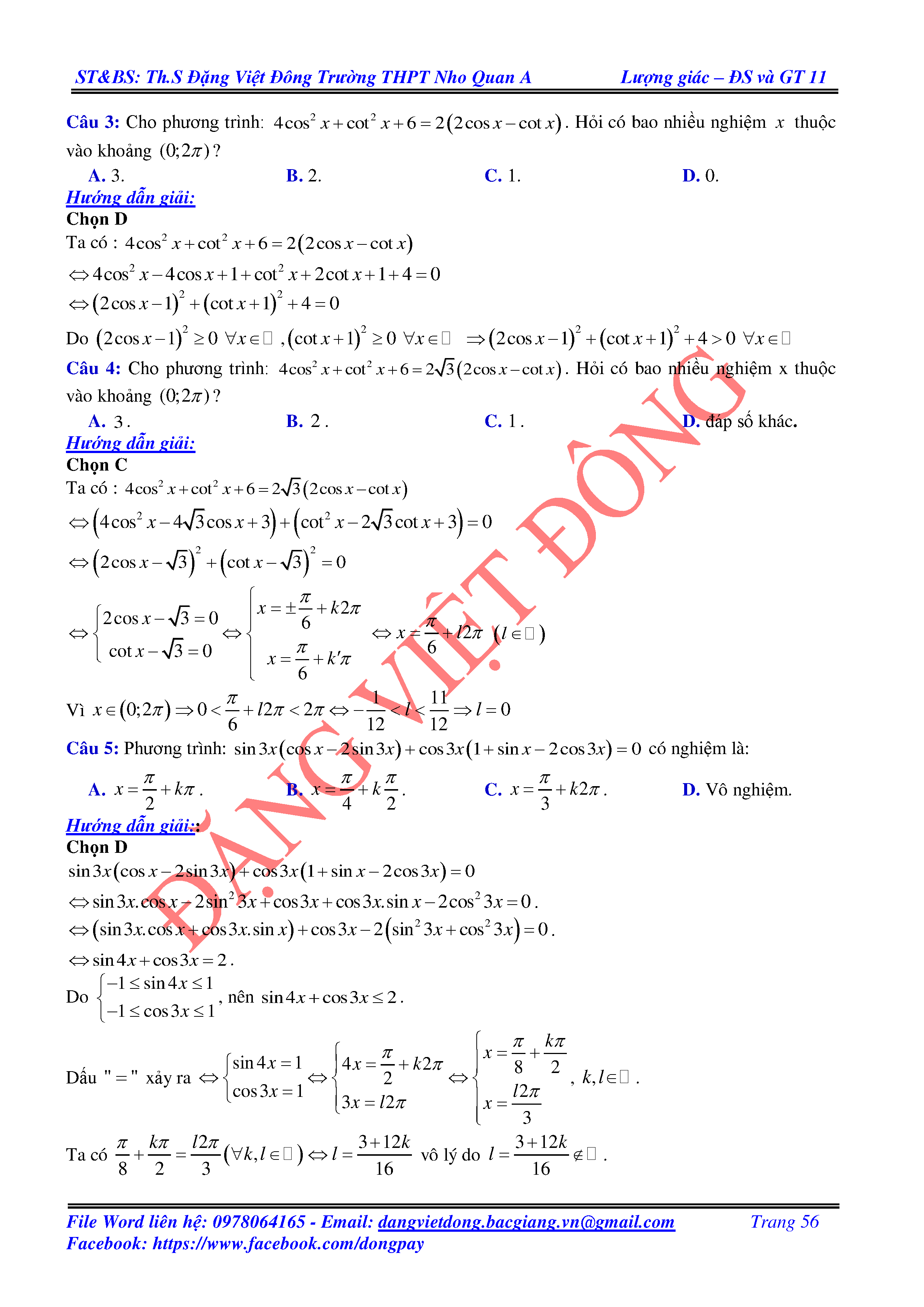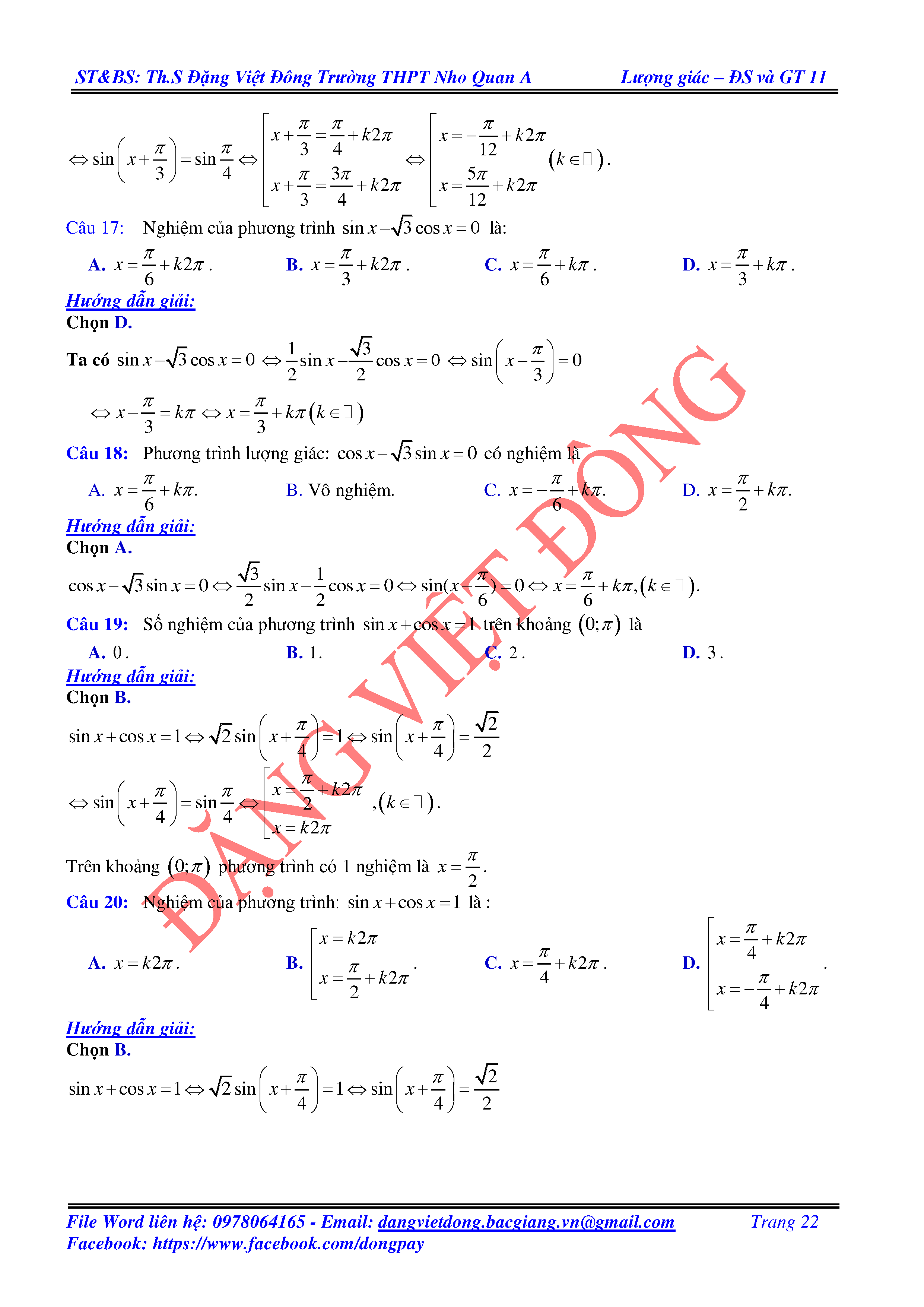 Bài Tập Có đáp án Chi Tiết Về Phương Trình Bậc Nhất đối Với Sin Và Cos ...