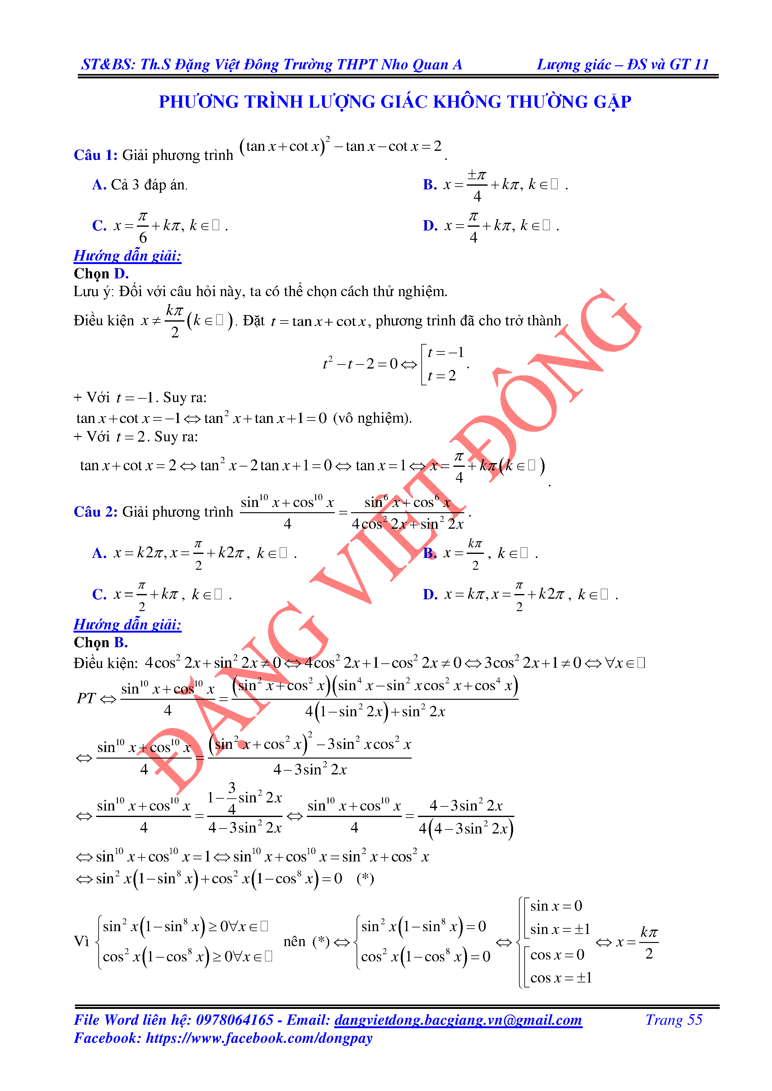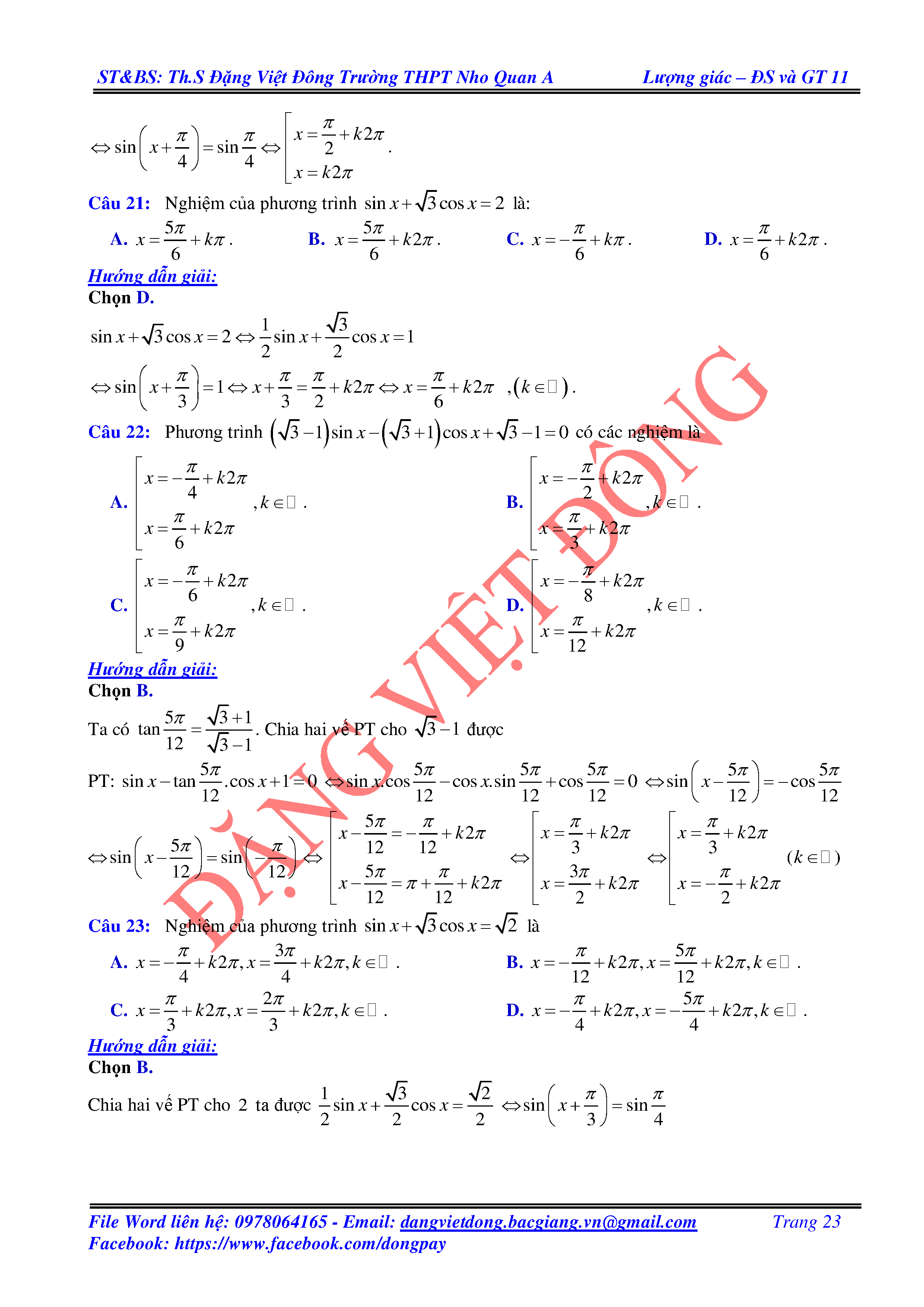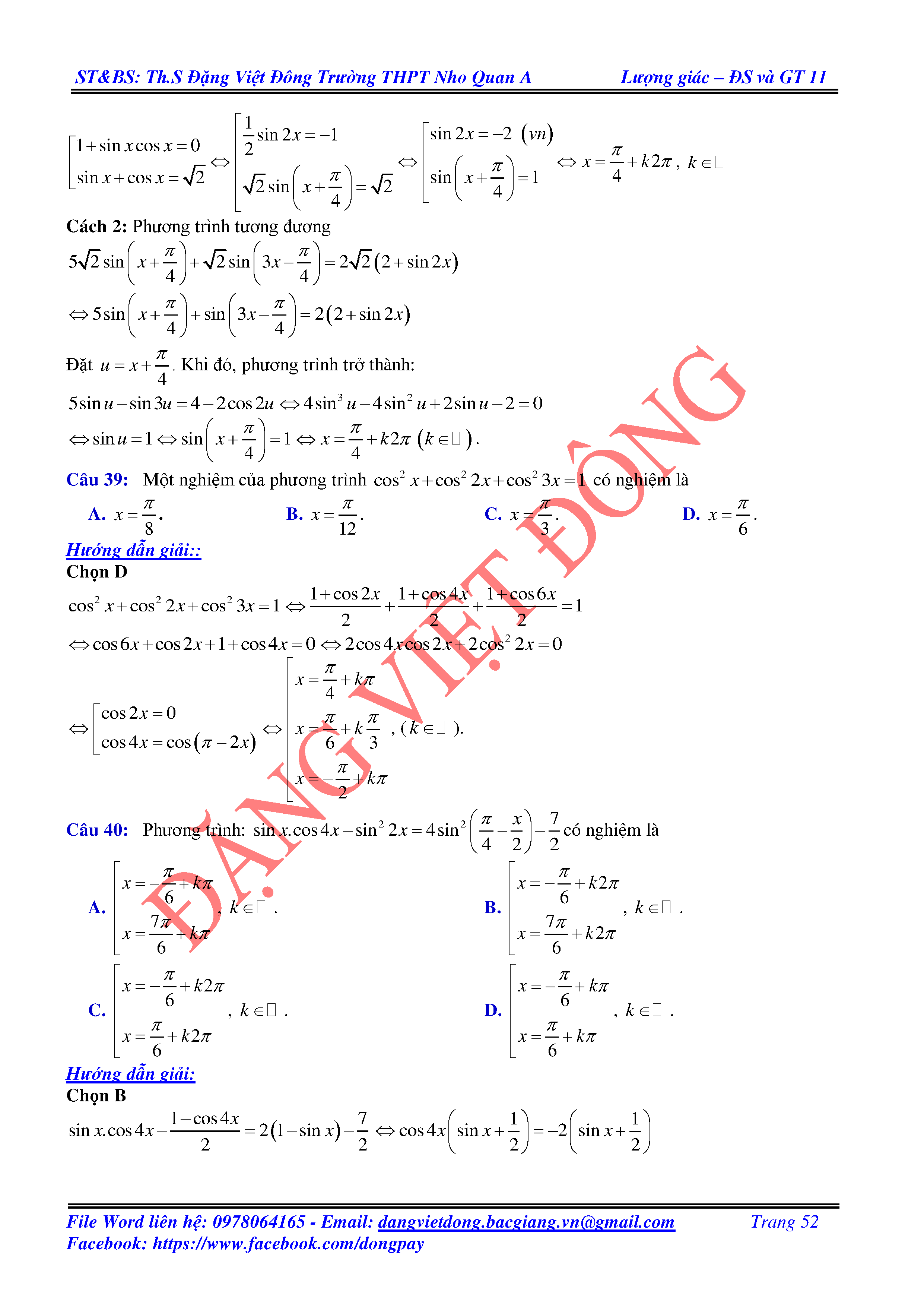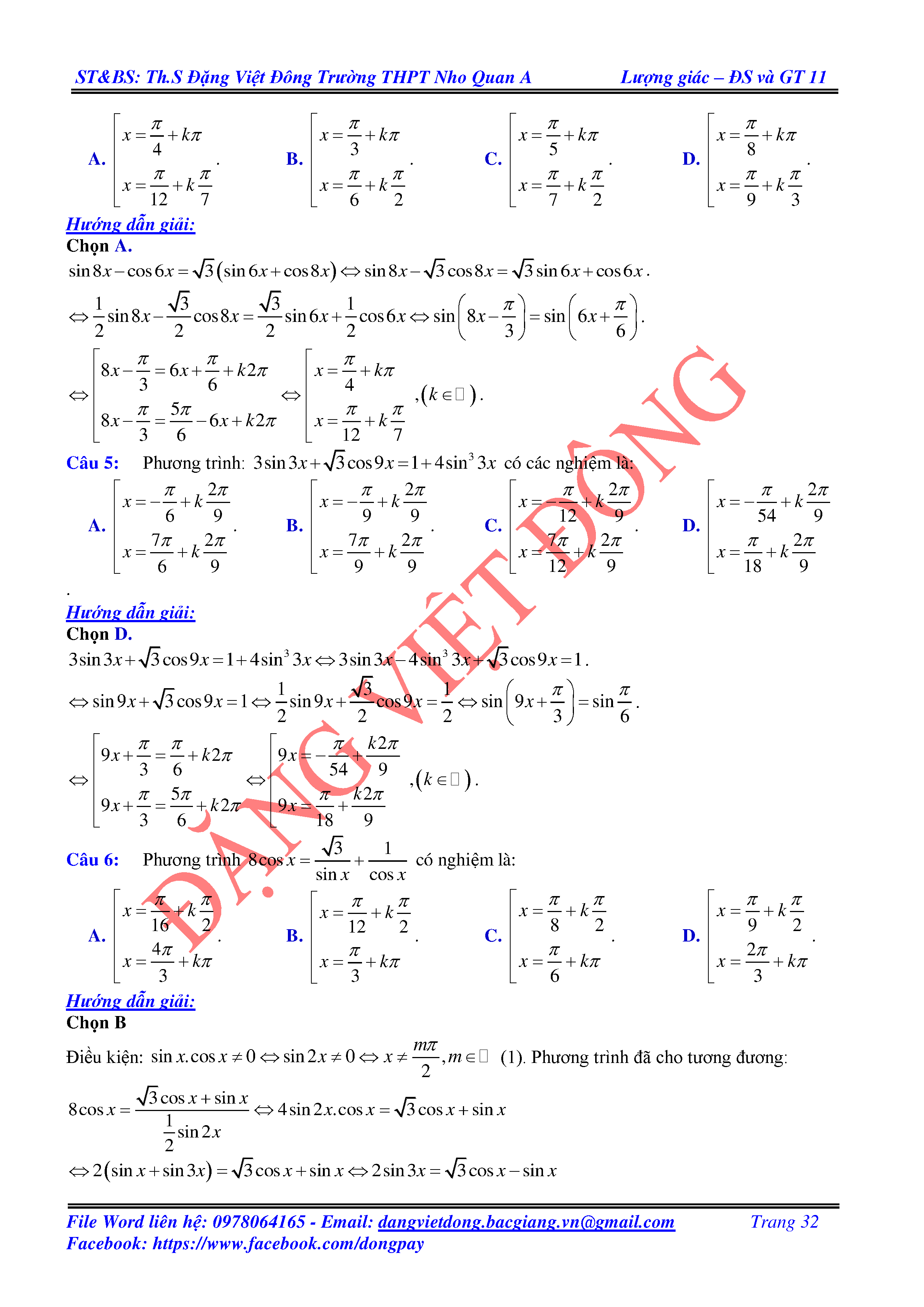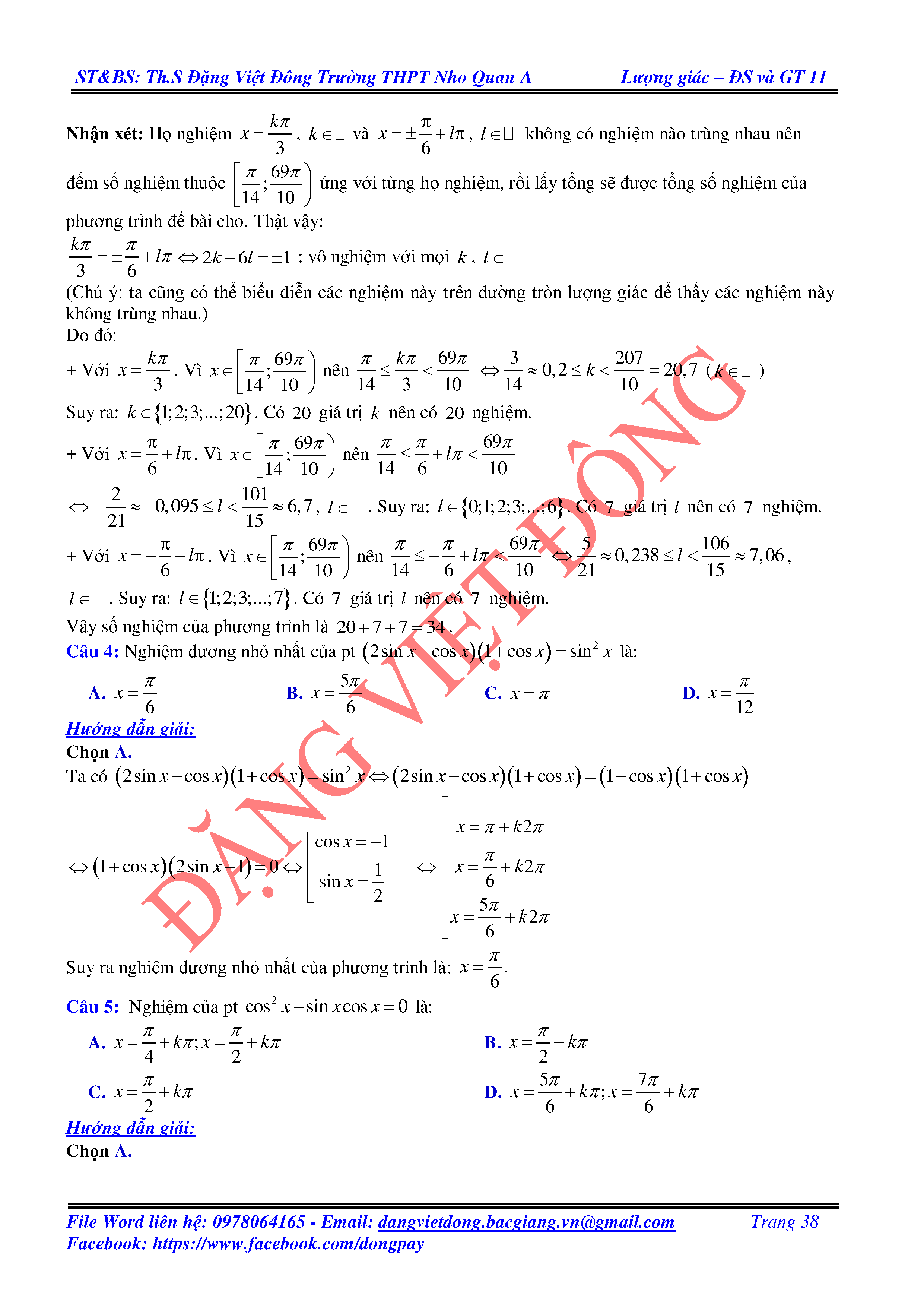 Bài Tập Có đáp án Chi Tiết Về Phương Trình Bậc Nhất đối Với Sin Và Cos ...