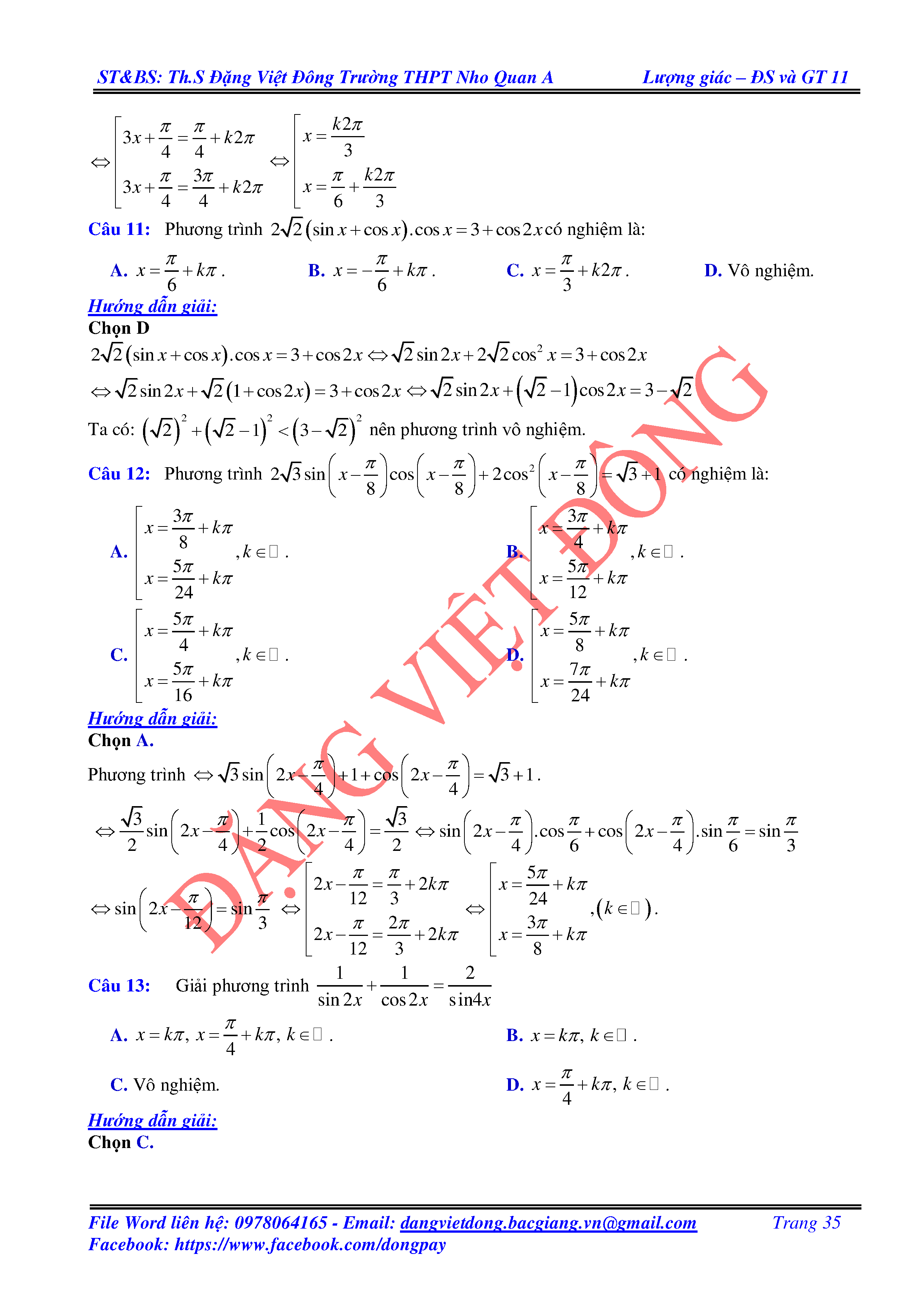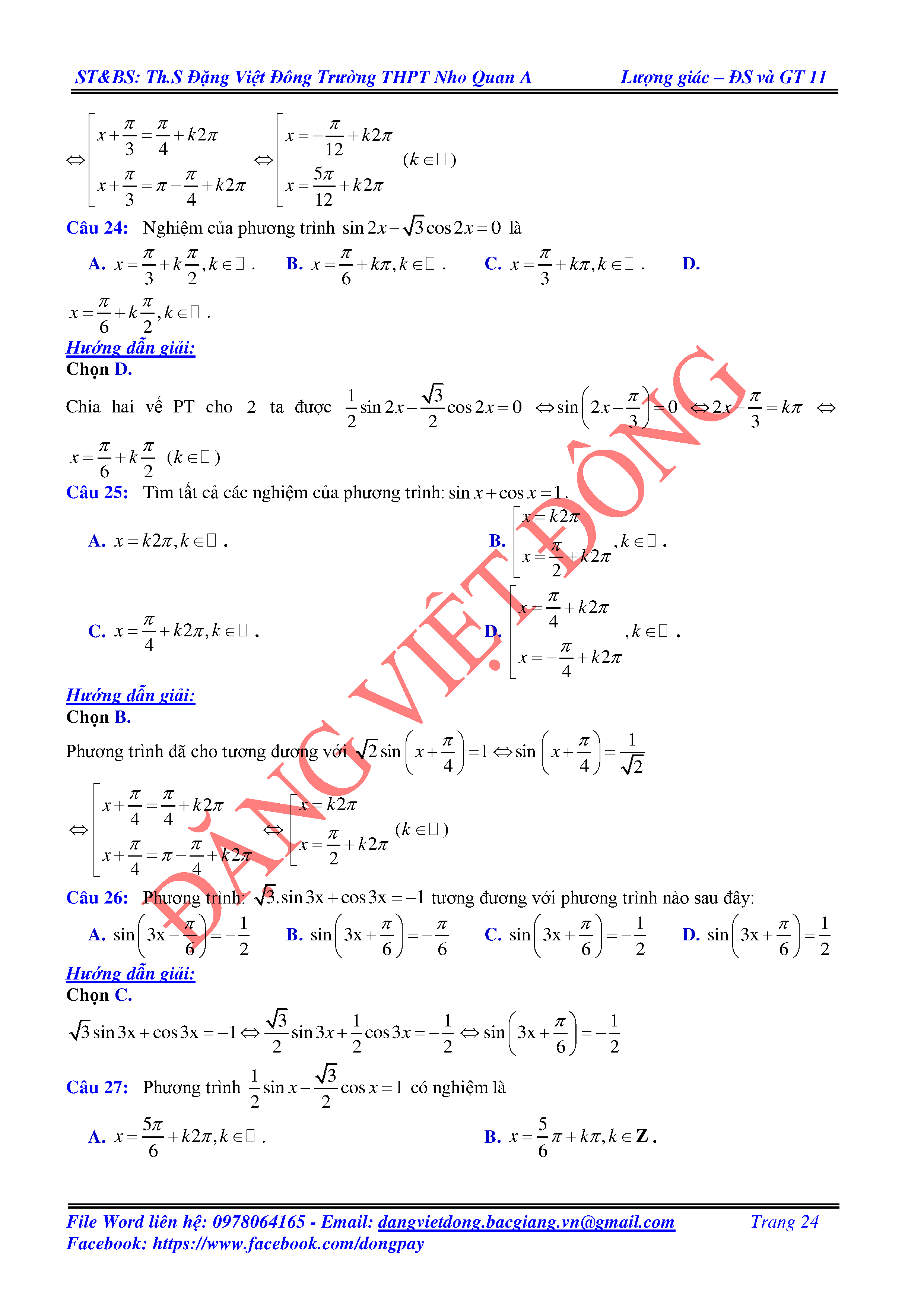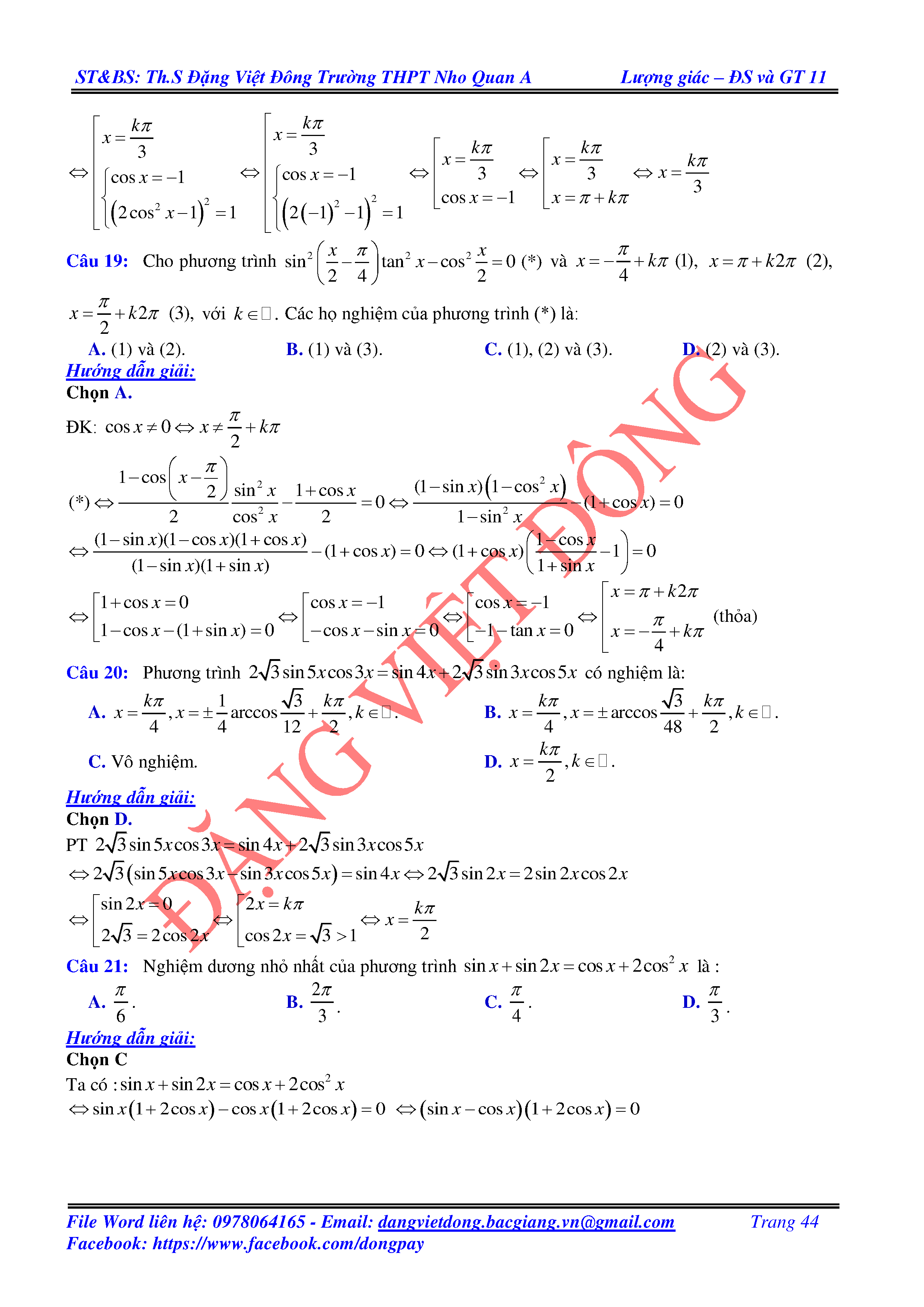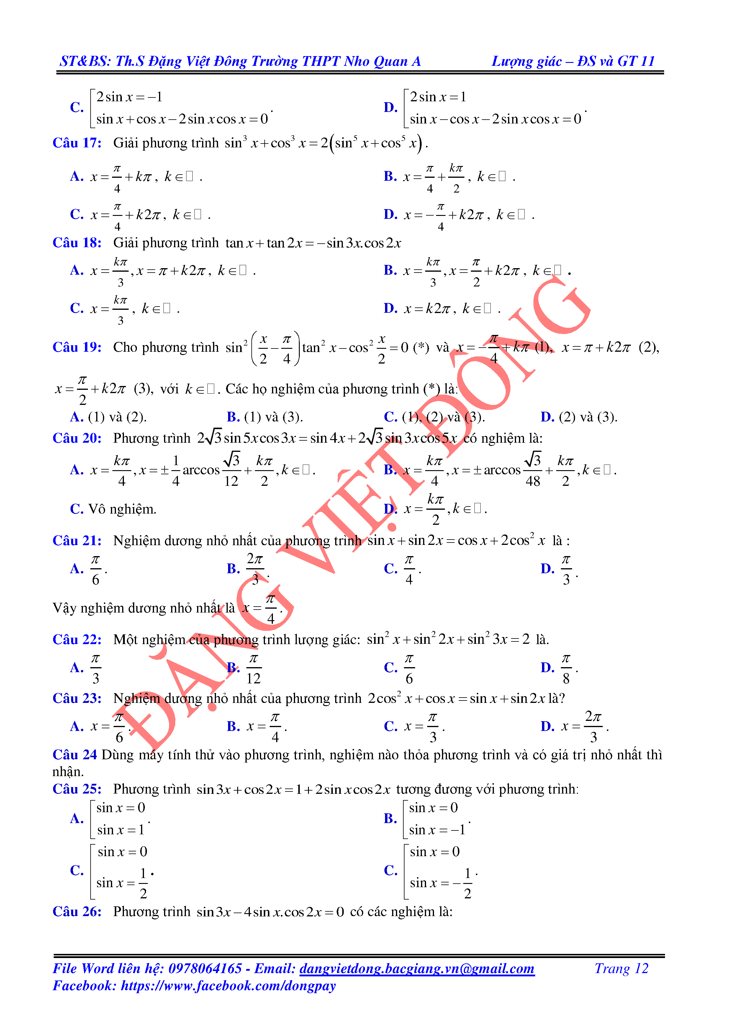 Bài Tập Có đáp án Chi Tiết Về Phương Trình Bậc Nhất đối Với Sin Và Cos ...