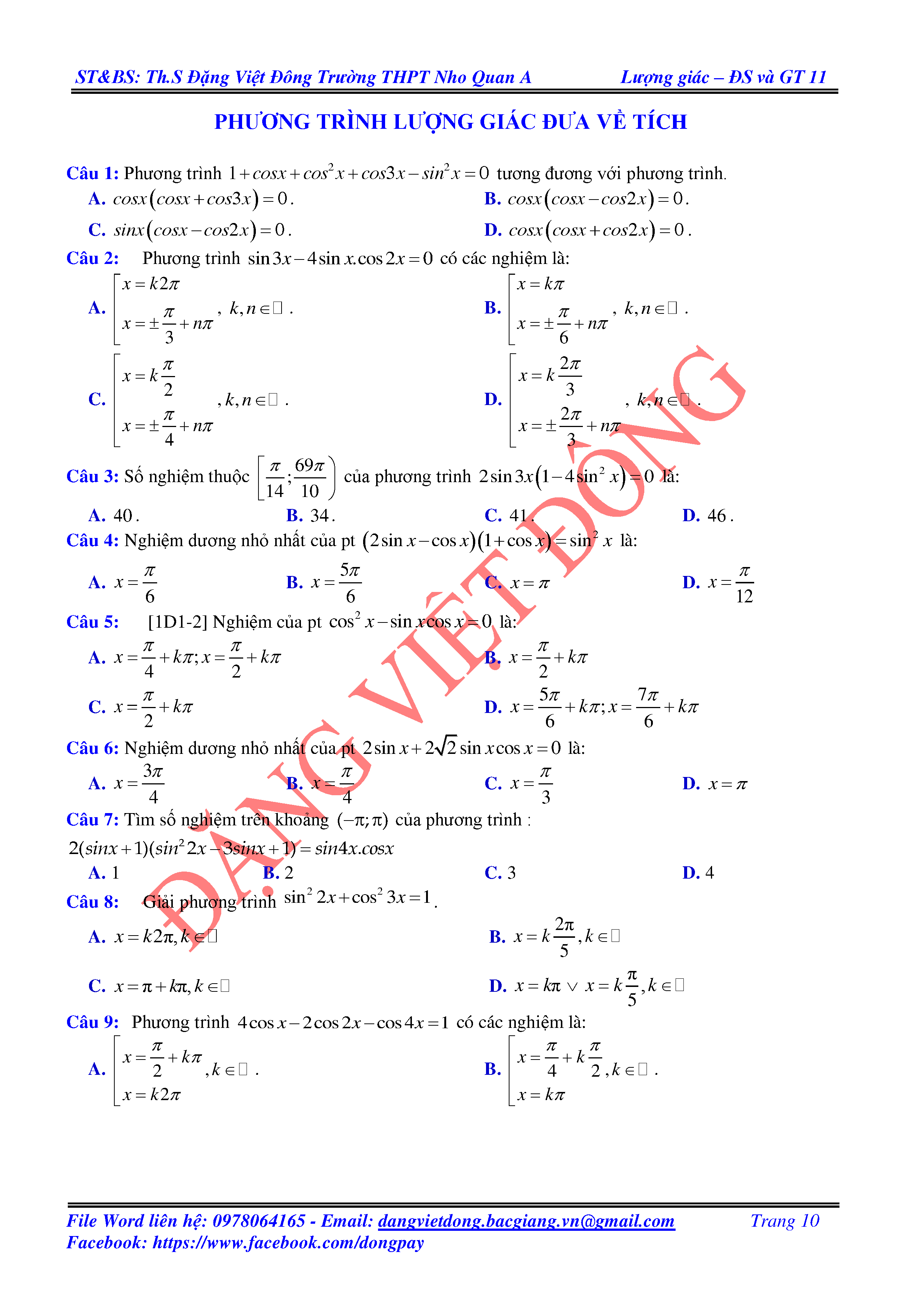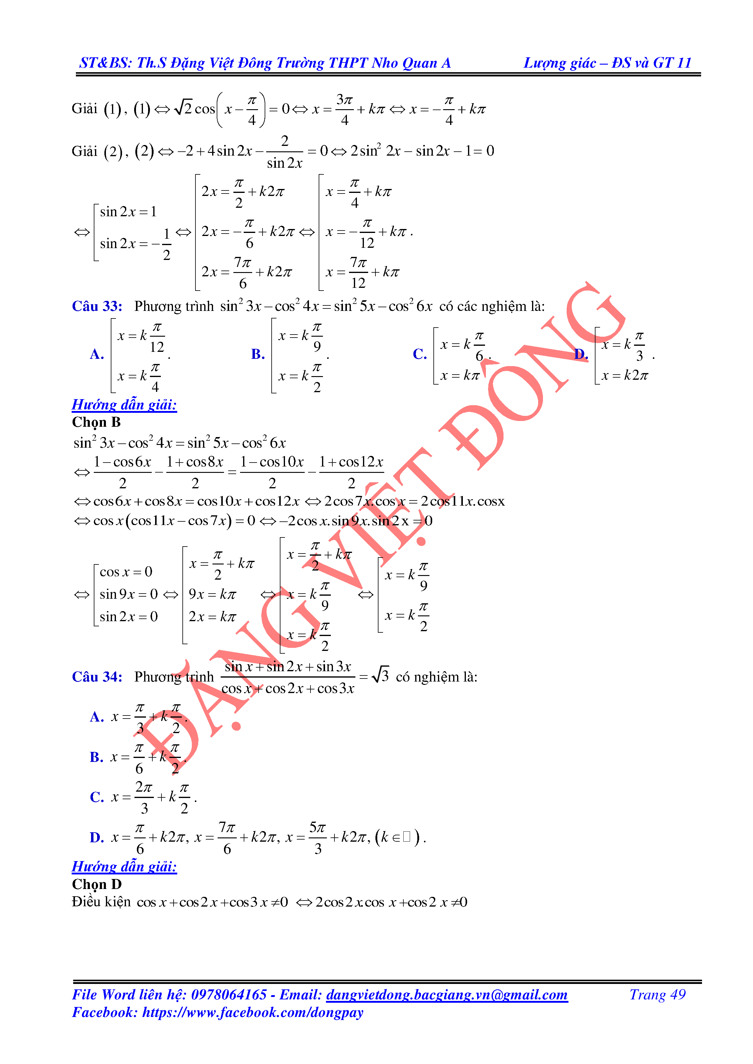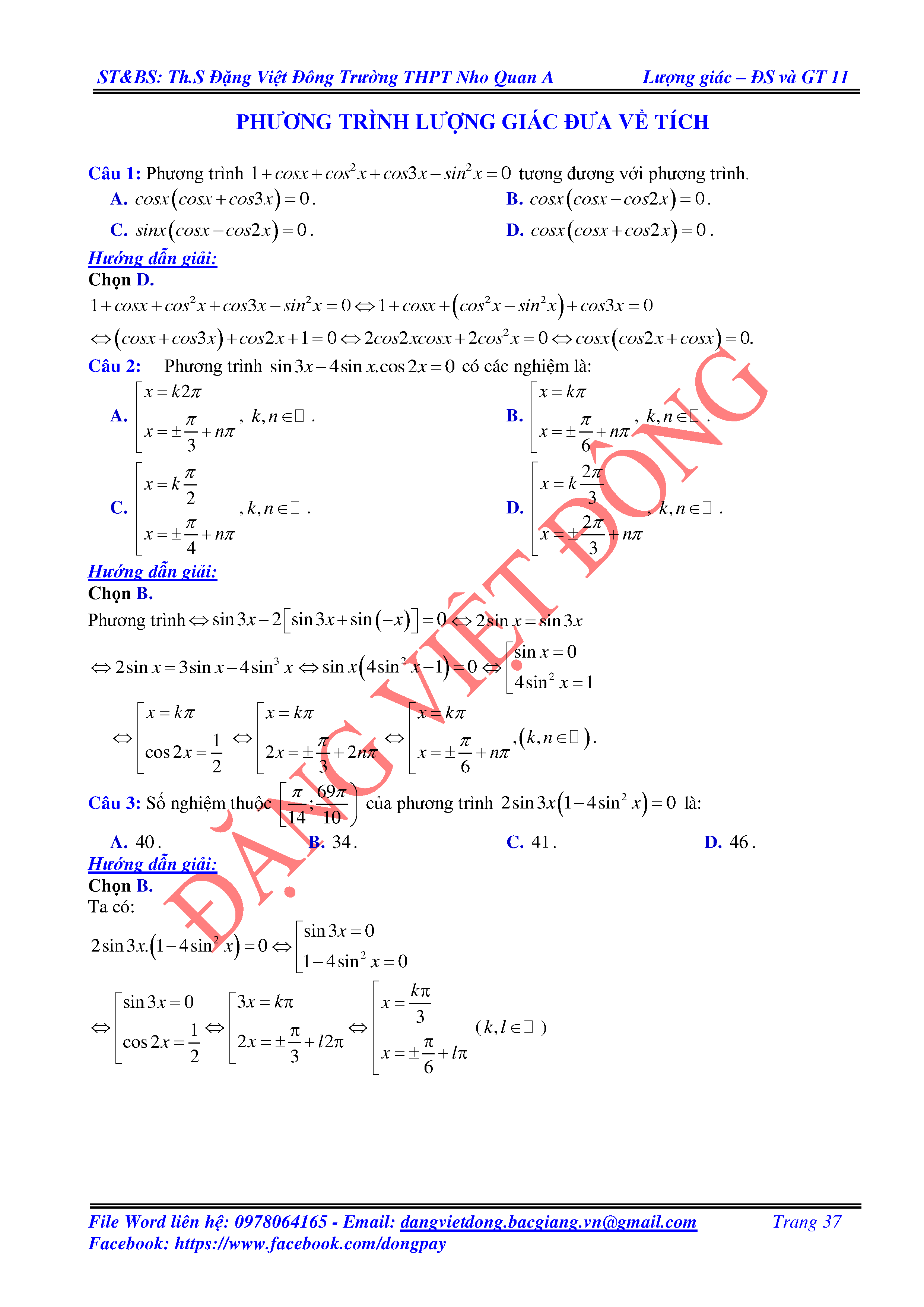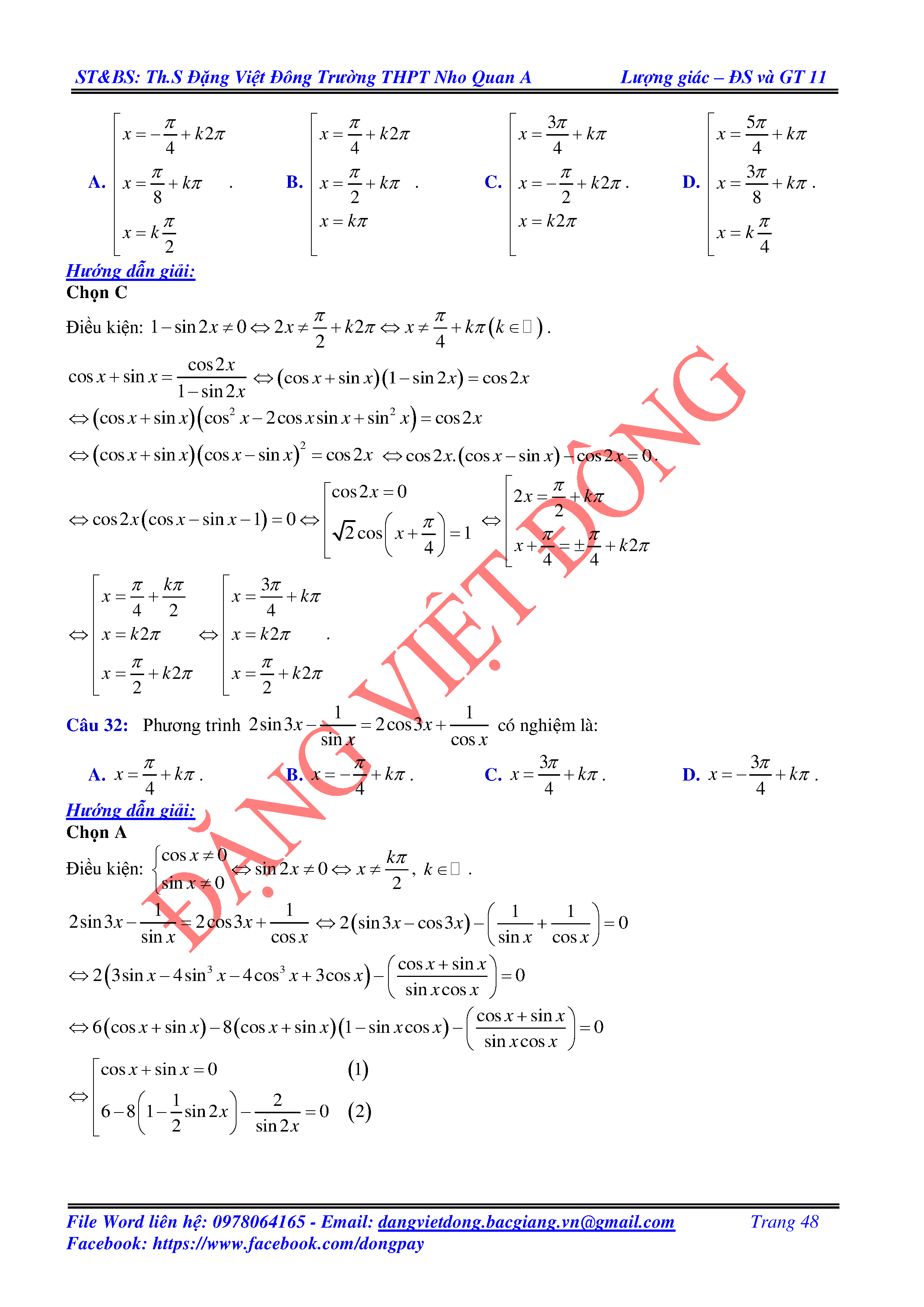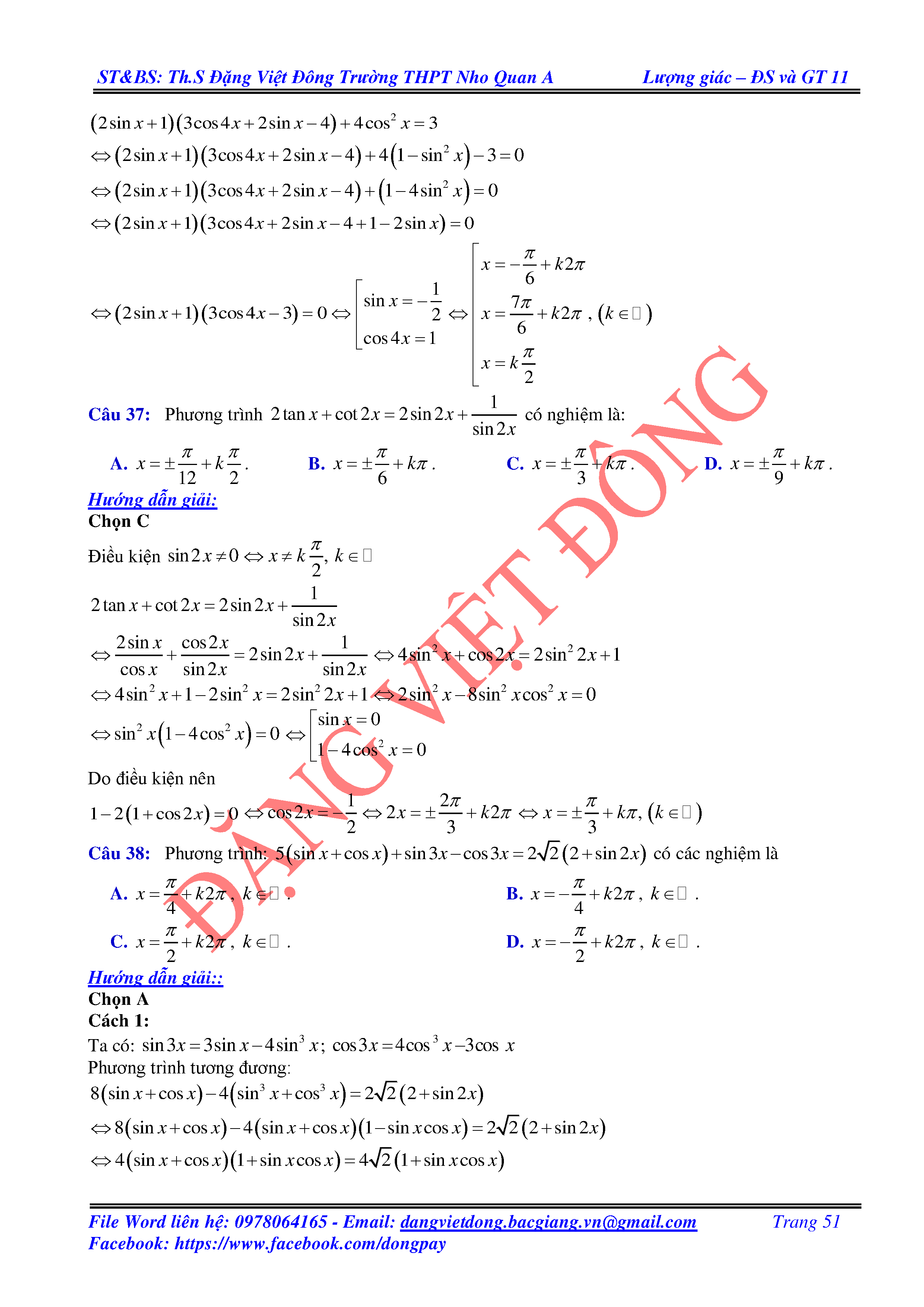 Bài Tập Có đáp án Chi Tiết Về Phương Trình Bậc Nhất đối Với Sin Và Cos ...