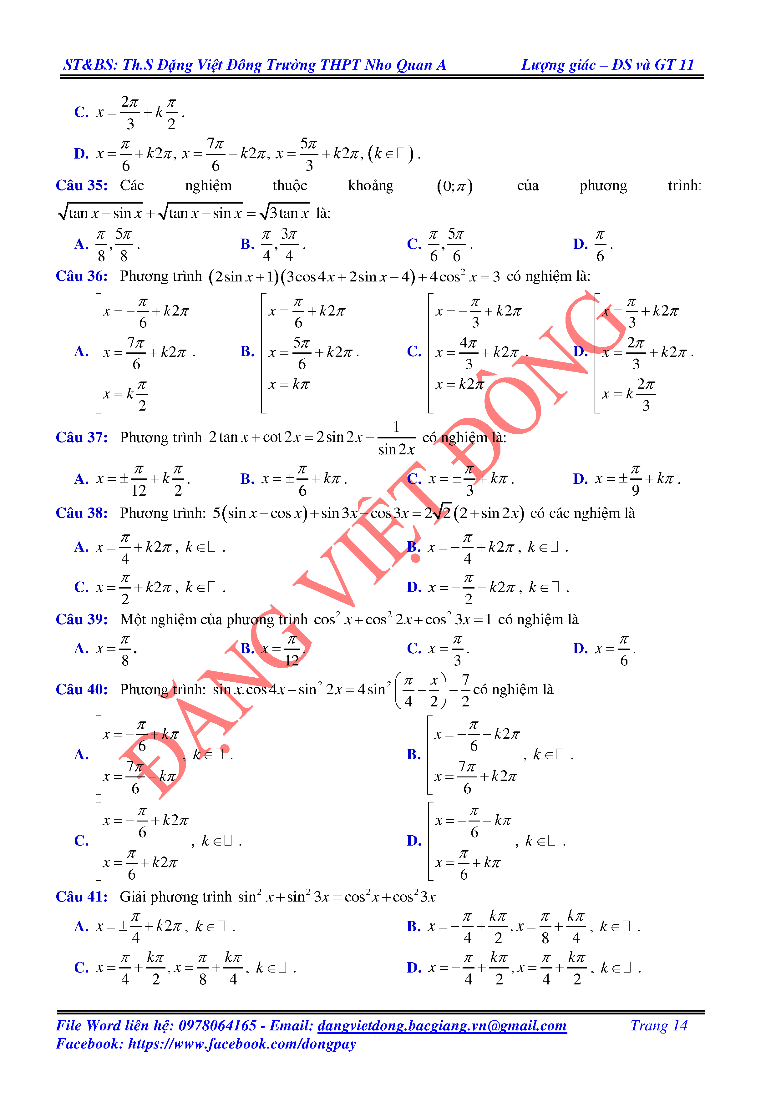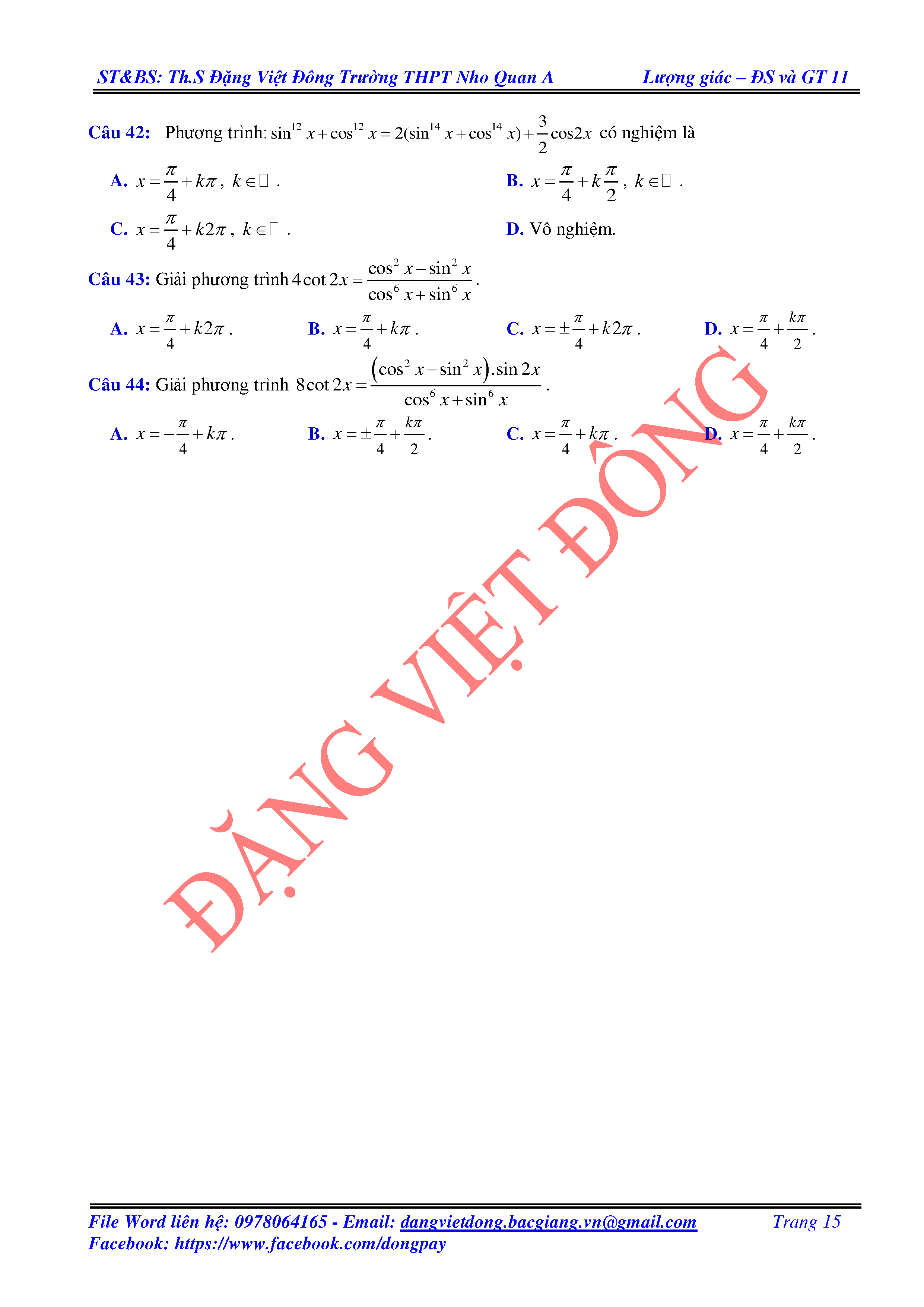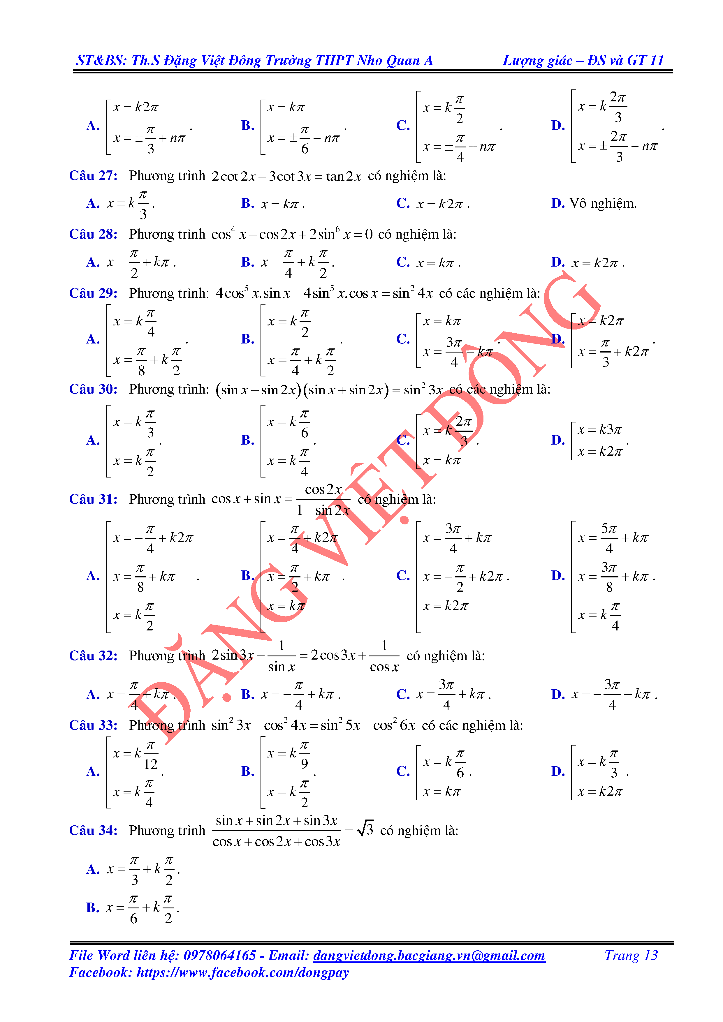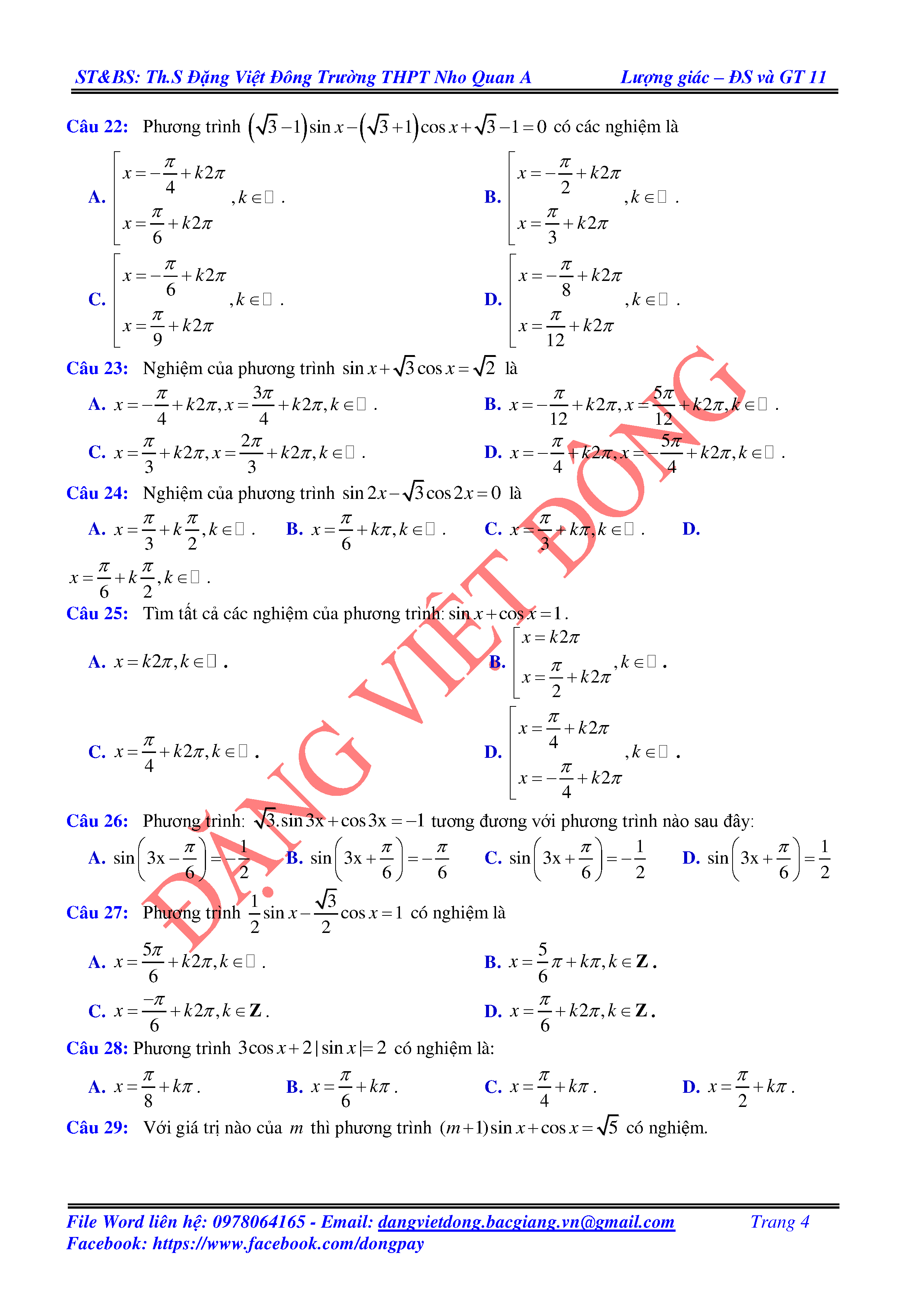 Bài Tập Và đáp án - Phương Trình Bậc Nhất đối Với Sin Và Cos