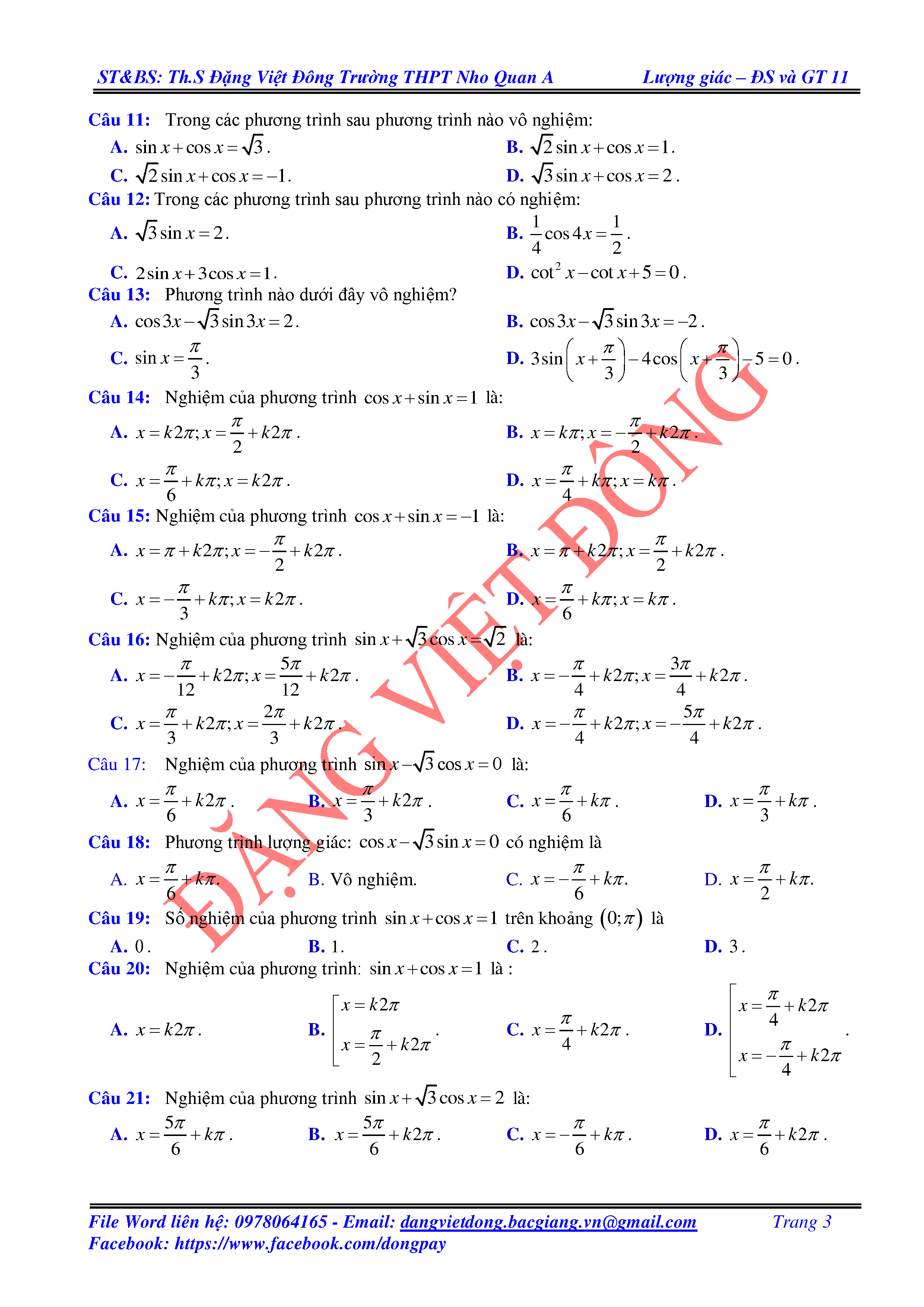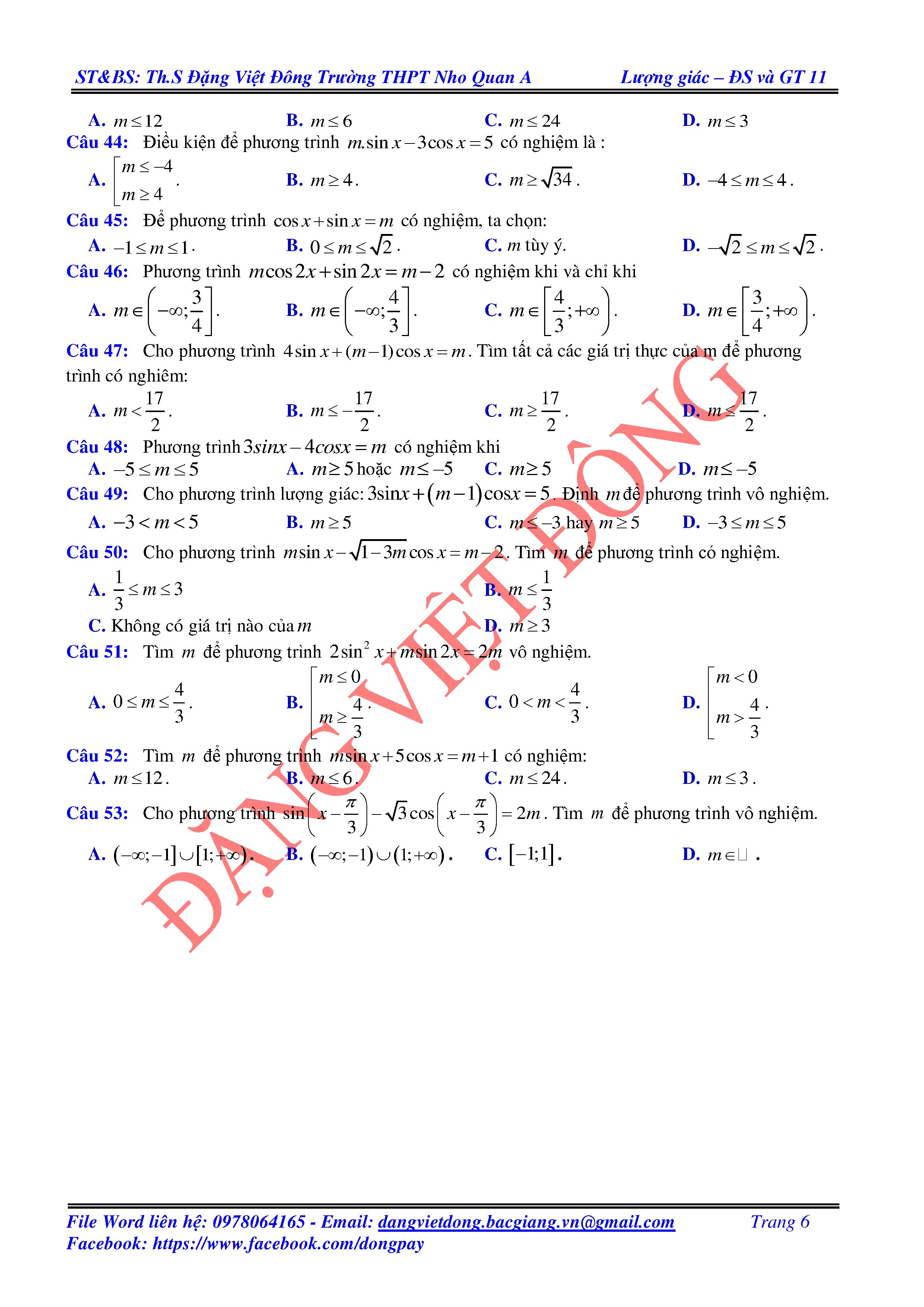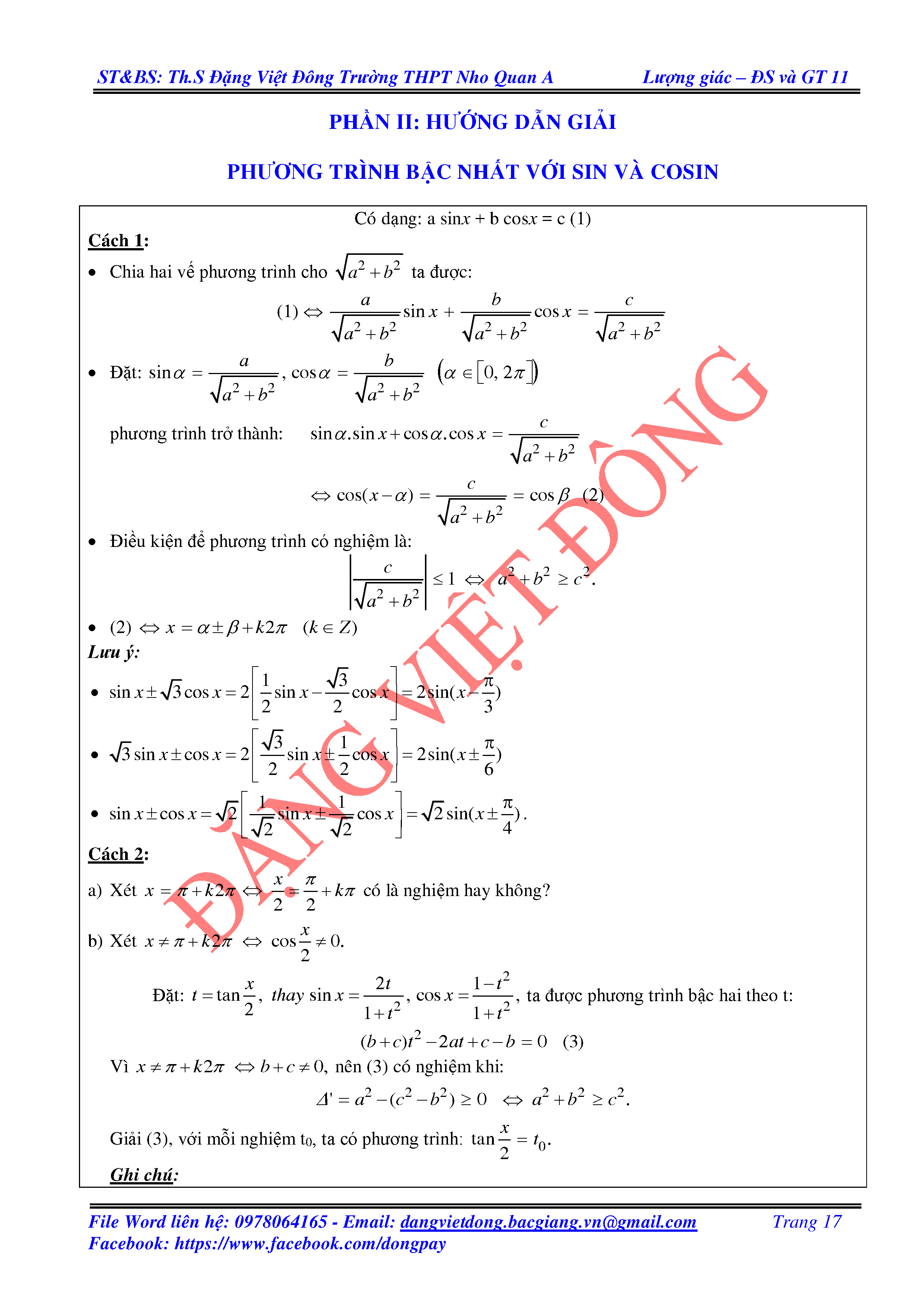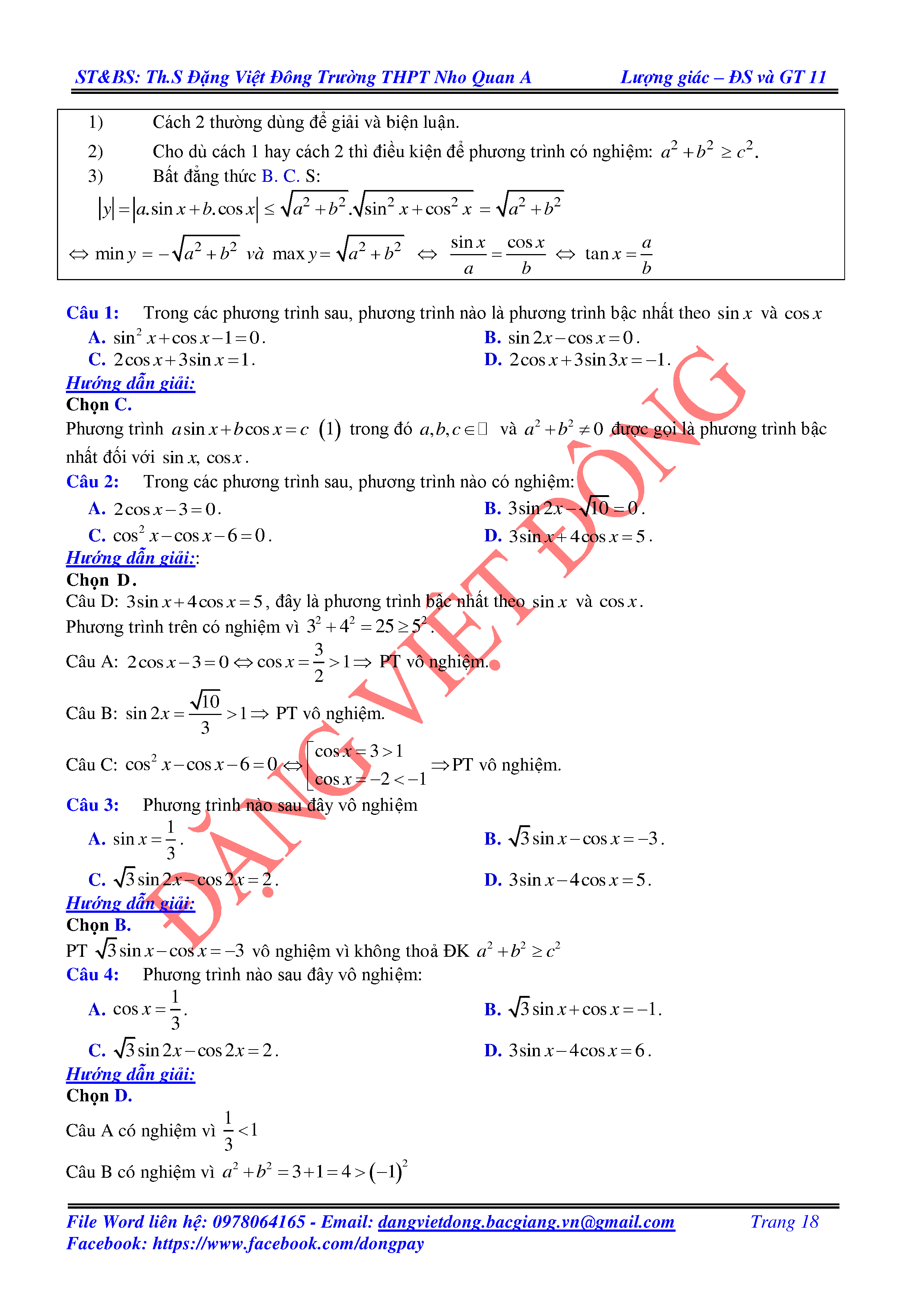Phương Trình Bậc Nhất đối Với Sin Và Cos (Lý Thuyết Và Bài Tập Trắc ...