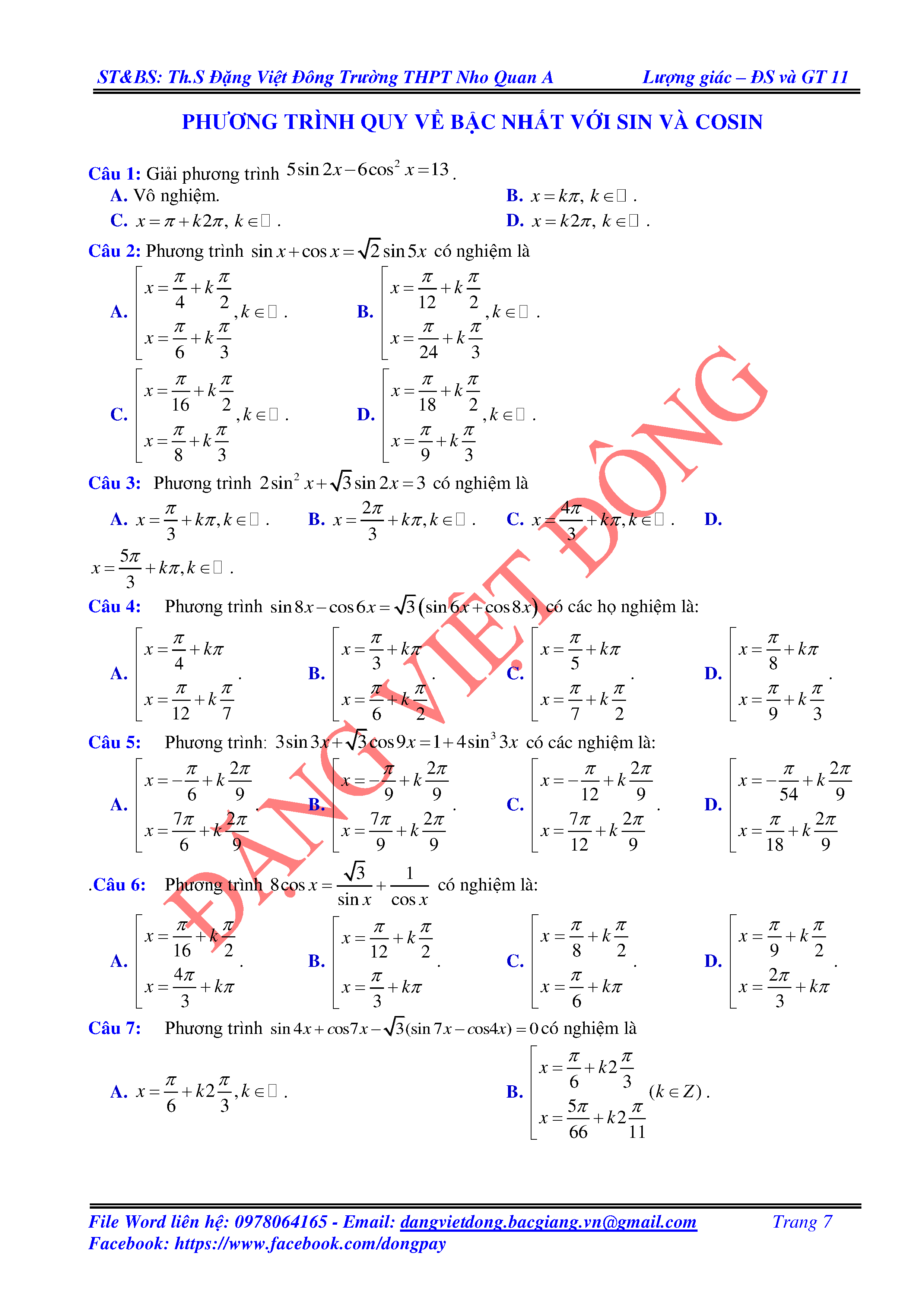Liên quan đến -- Liên quan đến -- Về vấn đề -- Về vấn đề -- Tiêu đề Link Email Số điện thoại Nội dung chi tiết Gửi ×PHƯƠNG TRÌNH BẬC NHẤT VỚI SIN VÀ COSIN