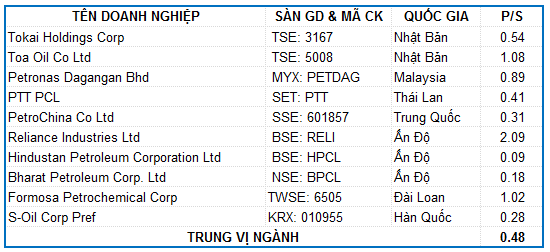 PLX là doanh nghiệp ở vị trí dẫn đầu trong lĩnh vực kinh doanh, phân phối, bán lẻ xăng dầu ở Việt Nam. Vì vậy, người viết sử dụng các doanh nghiệp cùng ngành trong khu vực (Ấn Độ, Trung Quốc, Malaysia, Hàn Quốc…) làm cơ sở tính giá trị hợp lý của cổ phiếu.