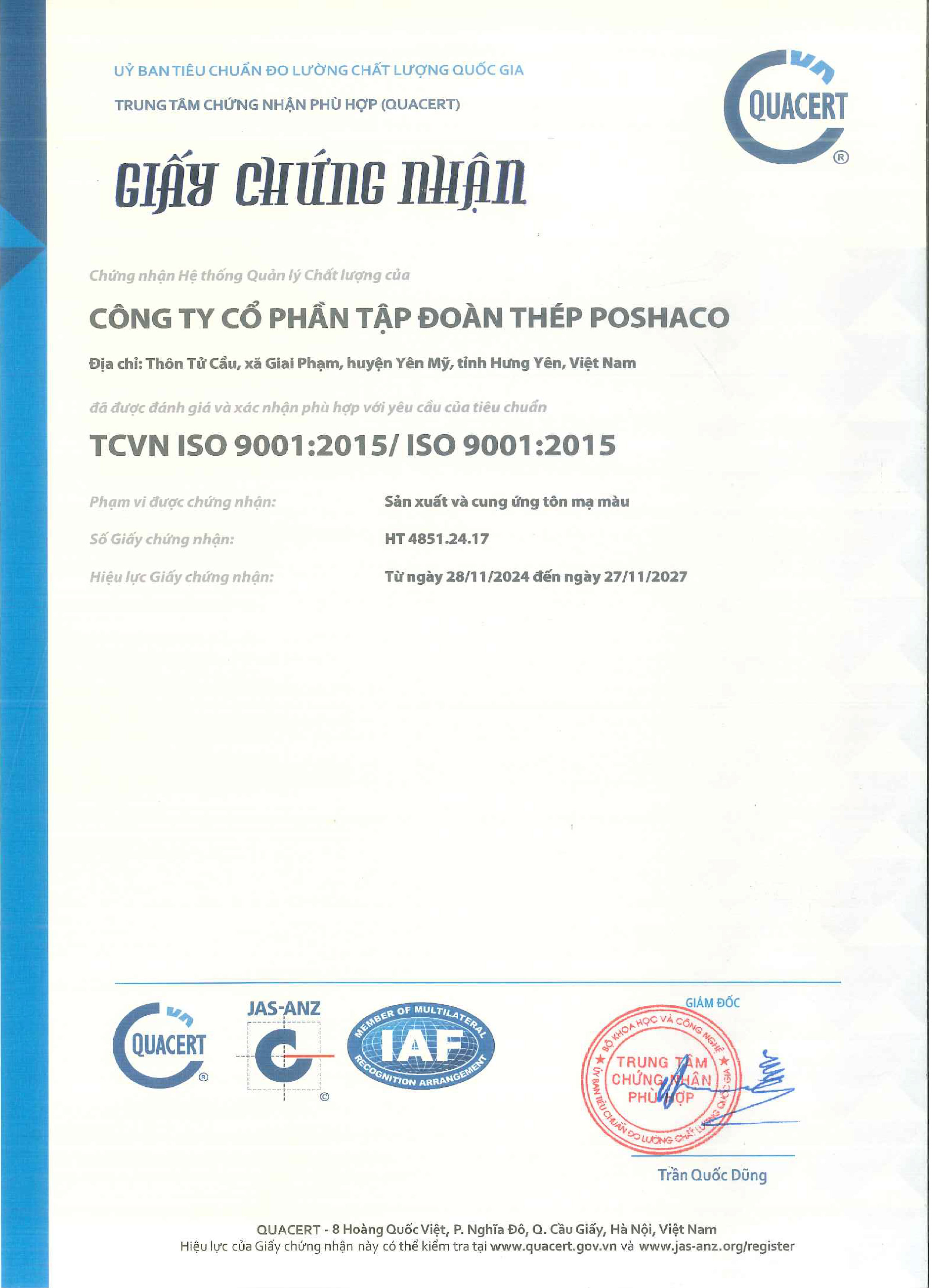 Poshaco Group was established and has been growing since 1996. Today, Poshaco Group takes pride in being a leading specialist in the production of color-coated steel coils with an advanced aluminum-zinc-magnesium alloy coating.