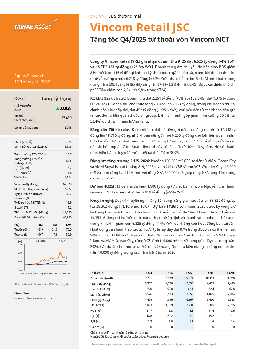 VRE: Khuyến nghị TĂNG TỶ TRỌNG với giá mục tiêu 33,829 đồng/cổ phiếuNguồn: MAS Tải về 12/12/2025 |