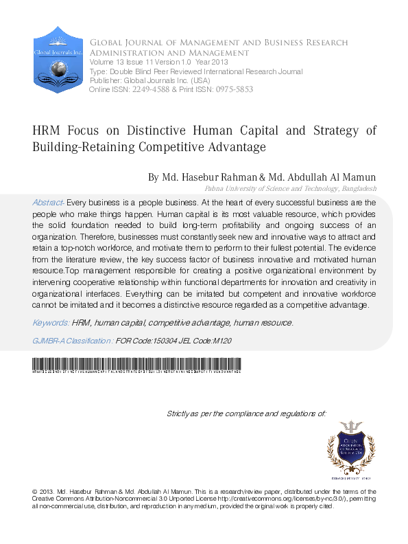 Luis Angel Guerras-MartindownloadDownload free PDFHRM Focus on Distinctive Human Capital and Strategy of Building-Retaining Competitive Advantage
