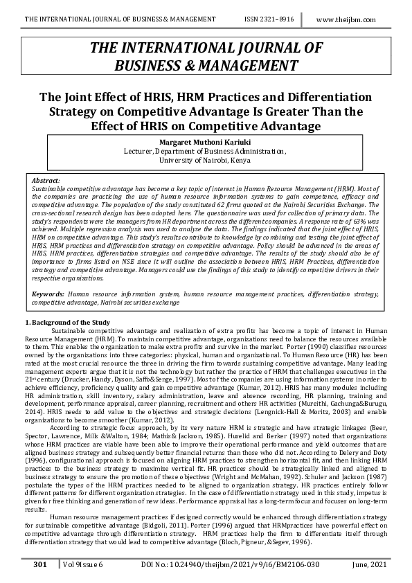 folorunsho oladipupodownloadDownload free PDFExists a Relationship Between Strategic Human Resources Management, Innovation and Competitive Advantage?