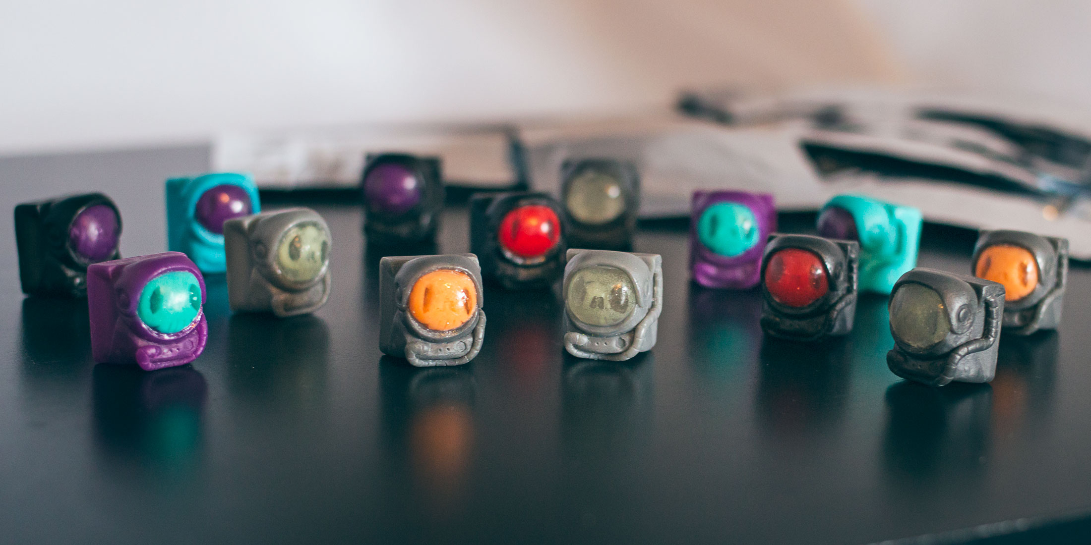 Kosmonavt là sản phẩm hợp tác giữa KeyCollectiv và Booper, hai cái tên sản xuất keycap khá nổi trên thế giới. Mang đậm phong cách "lạc lối ngoài không gian", những chiếc nút với hình các anh chàng phi hành gia vũ trụ nhưng bên trong chiếc mũ tiếp dưỡng khí là những chiếc đầu lâu vừa khiến người sử dụng ám ảnh và ấn tượng vì mức độ chi tiết của chúng.