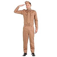 Fun Costumes WW2 Adult Army Costume | Khaki Soldier Military Uniform for Halloween | Shirt, Pants, Necktie, & Hat 1,864,545đ