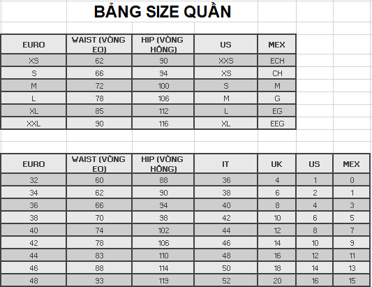 Hướng dẫn chọn size: