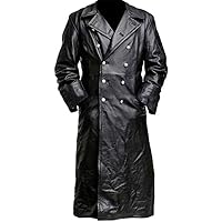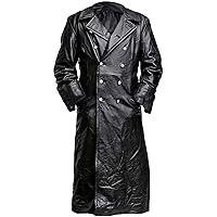 Jnriver Mens Black Leather Trench Coat - Double Breasted German Classic Officer WW2 Military Uniform Jacket 6,468,147đ