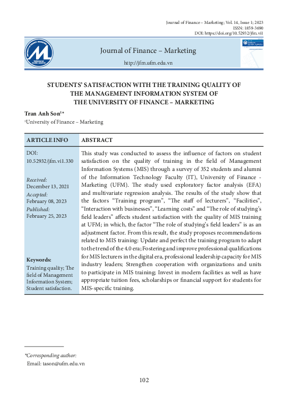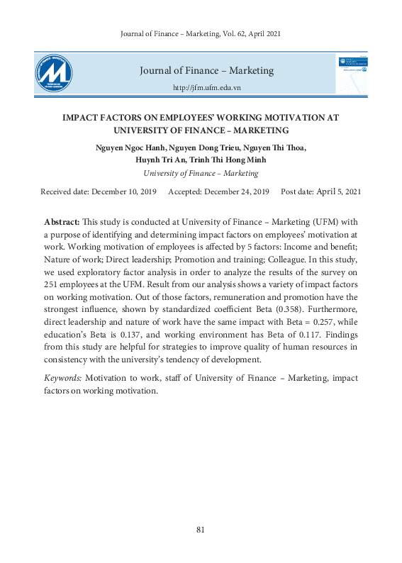 hậu bùidownloadDownload free PDFCác yếu tố ảnh hưởng đến động lực làm việc của viên chức và người lao động trường Đại học Tài chính – Marketing