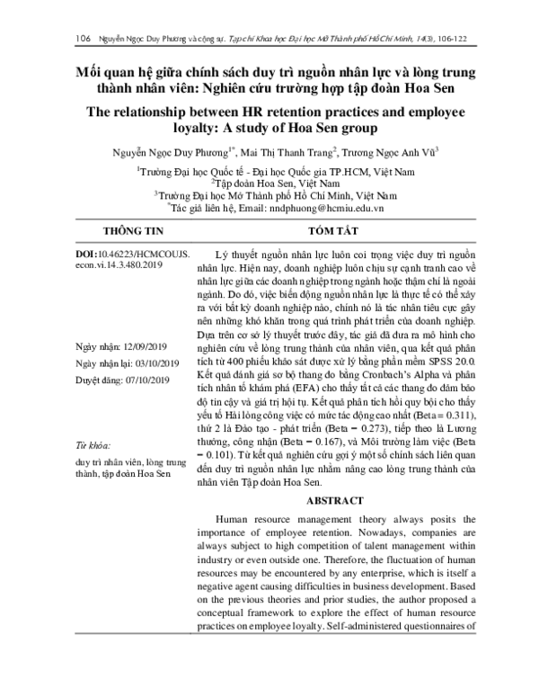 Mối quan hệ giữa chính sách duy trì nguồn nhân lực và lòng trung thành nhân viên: Nghiên cứu trường hợp tập đoàn Hoa Sen