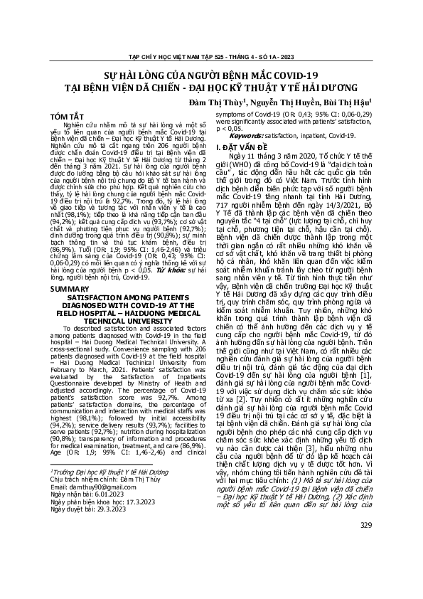 Thu Trang NguyễndownloadDownload free PDFSự Hài Lòng Của Người Bệnh Mắc COVID-19 Tại Bệnh Viện Dã Chiến - Đại Học Kỹ Thuật y Tế Hải Dương