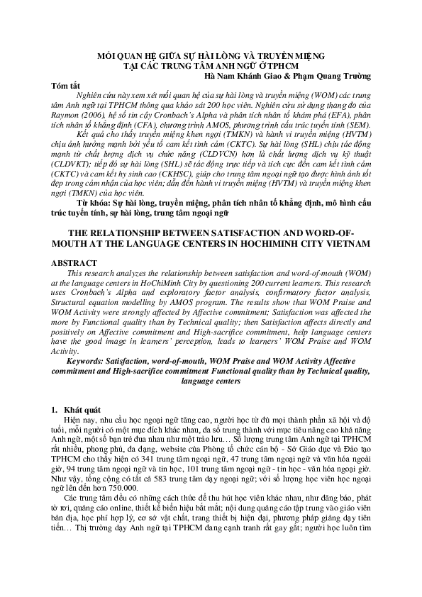 arrow_back_iosMối quan hệ giữa sự hài lòng và truyền miệng tại các trung tâm Anh ngữ ở TPHCMGiao HadownloadDownload free PDFAbstract