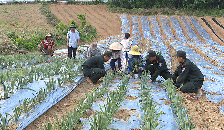 | Cùng chung tay giúp đồng bào dân tộc Vân Kiều ở Bản Chùa, xã Cam Tuyền trồng dứa |