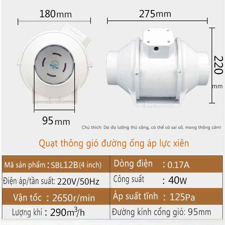 Quạt Thông Gió đường ống Tròn áp Lực Xiên động Lực Mạnh ... - Shopee