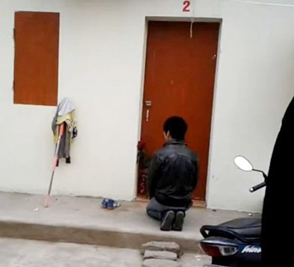 Chàng trai kiên nhẫn quỳ gối trước cửa phòng trọ bạn gái