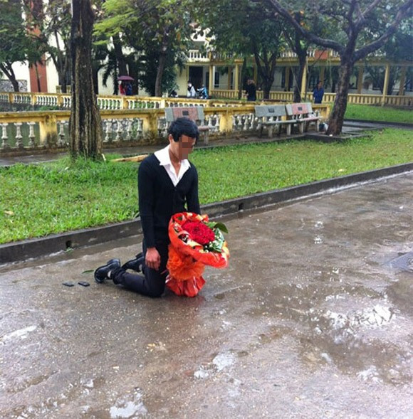 Cuối tháng 11/2013, bức ảnh một chàng trai quỳ gối trước phòng bạn gái với một cành hoa hồng để mong cô gái tha thứ cho lỗi lầm của mình được lan truyền nhanh chóng.