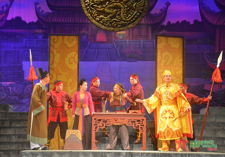 | Cảnh trong vở chèo “Mật chỉ giữa hoàng cung”. |