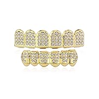 JINAO Diamond Grills for Your Teeth 14K Gold Plated Iced Out Mouth Teeth Grillz Top Bottom Tooth Caps Hip Hop Bling New Gold Silver Grill for Men Women Costume Jewelry 500,369đ