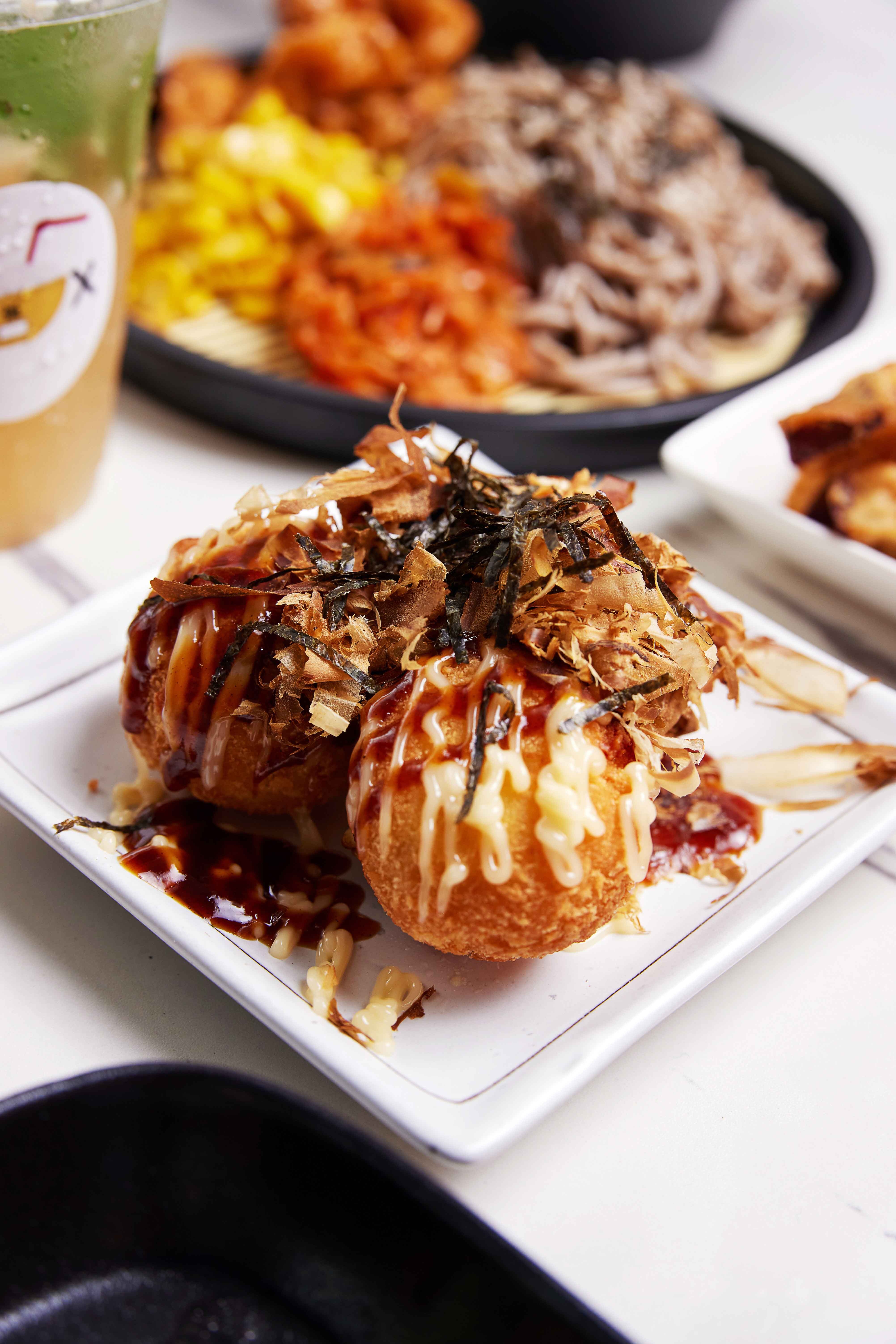 Not really takoyaki, but a mashed potato ball with scallion oil and spring onions. It’s stuffed with a cube of salmon that’s as soft as the potatoes, so the fish flavour does disappear. Nevertheless, the crisp breadcrumb exterior and fluffy mash are delish paired with the takoyaki sauce and mayo.