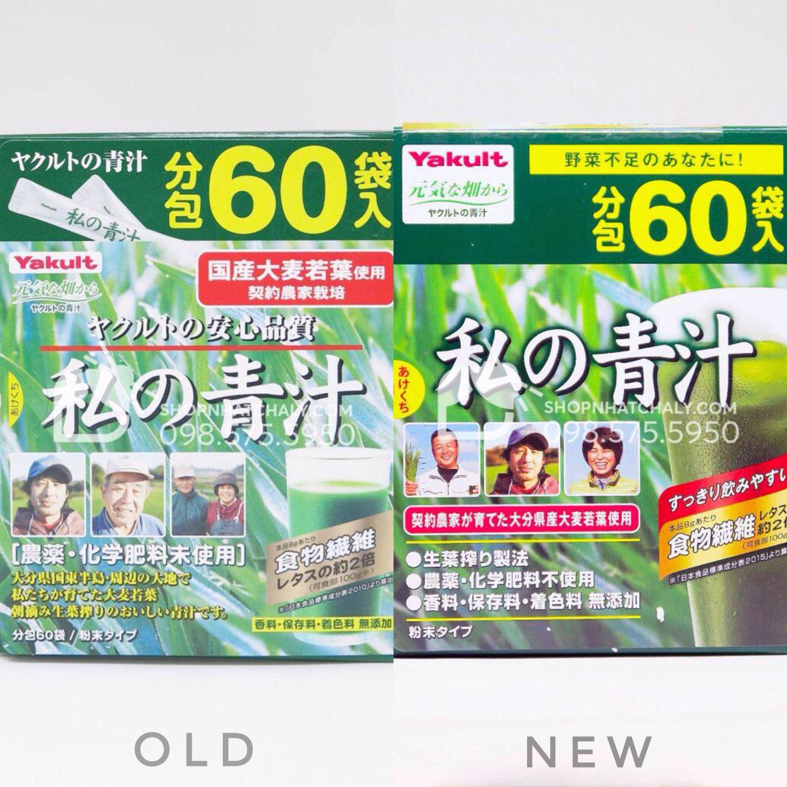 Bột rau xanh Yakult quốc sản Nhật mẫu mới nhất hiện tại (phải)