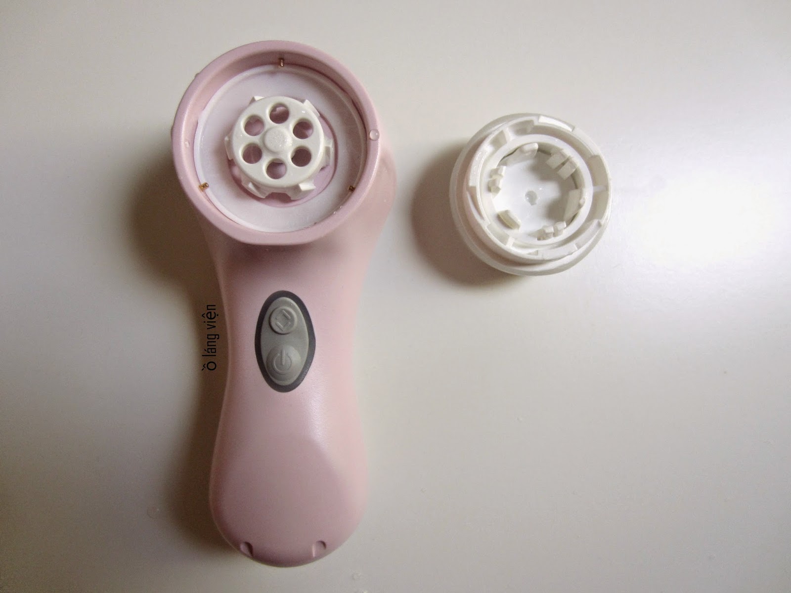 1. Máy rửa mặt: phần thân, phần đầu cọ và nắp đầu cọ. Phần thân cấu tạo bằng nhựa dùng sao cũng chả thấy dơ, và 100% chống thấm nước. Đơn giản có 2 cái nút thôi: 1 là nút nguồn, bật mở, 2 là phần điều chỉnh chế độ rung nhiều hay ít.Phần đầu cọ dễ dàng tháo rời khi đậy cái nắp vào (phải đậy cái nắp vào thì mới dễ mở hay khóa nhé) và xoay ngược chiều kim đồng hồ. Khi gắn vào cũng vậy, gắn cái nắp cọ vào và xoay theo chiều kim đồng hồ, nghe cái rắc là ok. Phần đầu cọ mặc định khi mua là đầu cọ mềm, dành cho da nhạy cảm.