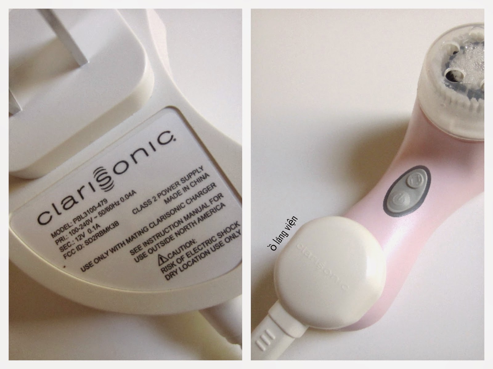 | những đặc điểm chú ý của một Clarisonic thật. bên trái là lot code sẽ register được với hãng. Bên phải là mặt sau, chỉ cần 1 sự xê dịch nhẹ của các chữ hay lằn gạch sóng âm của chữ S thì chắc chắn của bạn là FAKE. |