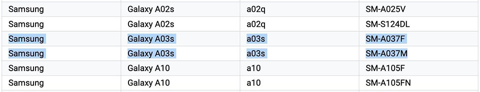 Trước đó, Galaxy A03s từng được phát hiện trên trang web đo hiệu năng Geekbench với chip Helio G35. Thiết bị dự kiến sẽ được cung cấp năng lượng từ viên pin 5,000mAh với hỗ trợ sạc nhanh 15W.