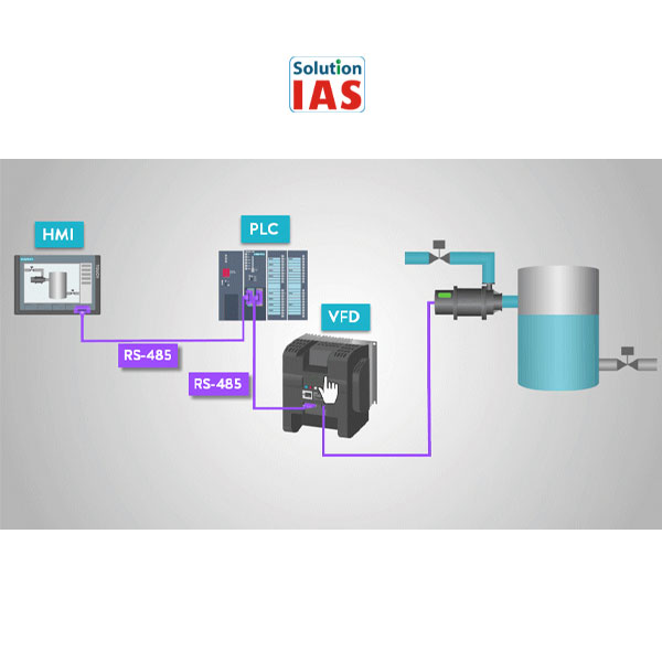 - Hệ thống VFD cho khi được kết nối RS485 sẽ kiểm soát được tốc độ của máy bơm từ xa.
