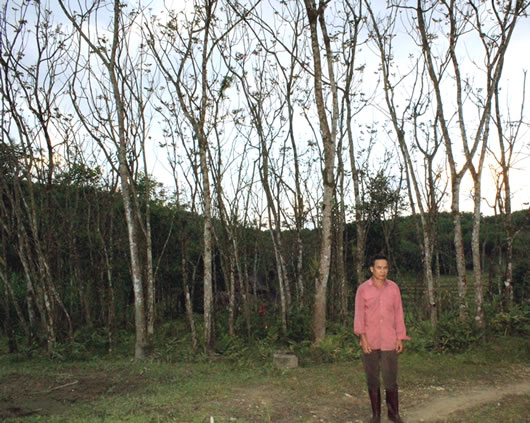 Câu chuyện ông Tới trót “yêu” cây lát hoa cũng thật tình cờ. Ông kể, đầu những năm 1990, cuộc sống của đồng bào Mường khi ông Tới còn ở vùng đồi núi H. Lạc Sơn (tỉnh Hòa Bình) vô vàn khó khăn. Những hủ tục, trẻ con bỏ học, thiếu đất sản xuất cứ thế “đeo bám” bà con từ năm này sang năm khác. Có những năm đói kém trong nhà đến củ sắn, củ khoai còn chẳng có. “Sinh ra đâu ai muốn rời bỏ quê hương đi tha hương cầu thực. Nhưng chẳng lẽ cả đời quanh quẩn ở nhà thì biết lấy gì nuôi vợ con. Nghĩ thế, tôi cùng một nhóm nhỏ trong làng quyết định đi kinh tế tự do vào miền Trung “đánh cược” cuộc sống của mình. Thứ mang theo những ngày đầu chỉ vài nắm hạt giống trồng lương thực ngắn ngày và thật tình cờ trong đó kèm theo một ít hạt giống cây lát hoa. Ban đầu trồng thí điểm xung quanh vườn, sau một thời gian tôi mạnh dạn trồng hơn 4.000 cây trên các ngọn đồi gần nhà” ông Tới tâm sự.