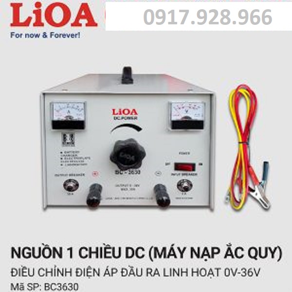 - Máy nạp ắc quy Lioa BC-3630 ngoài tính năng là nạp ắc quy có thể dùng tốt cho các thiết bị chạy điện 1 chiều như đèn led, đông cơ 1 chiều công suất nhỏ, dùng làm nguồn mạ điện ....vvv...vvvv
