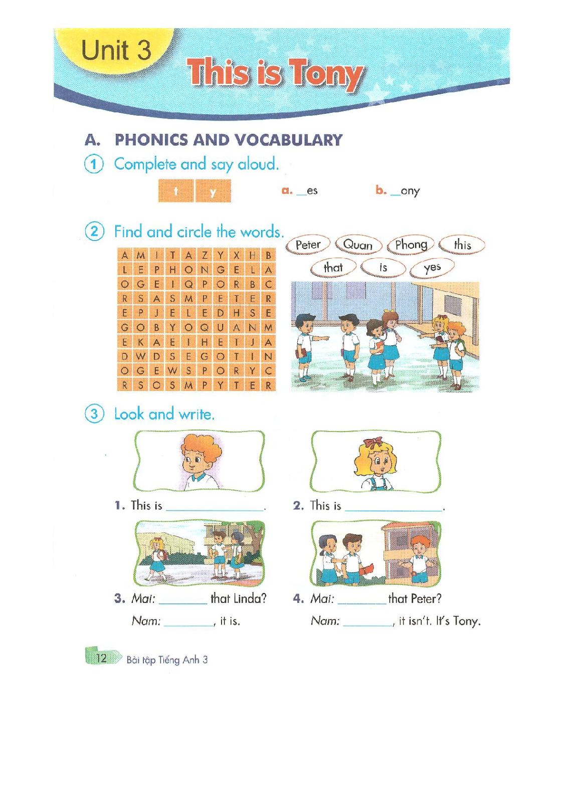 Unit 3. This Is Tony (Đây Là Tony) Trang 12 Sách Bài Tập Tiếng Anh 3 ...